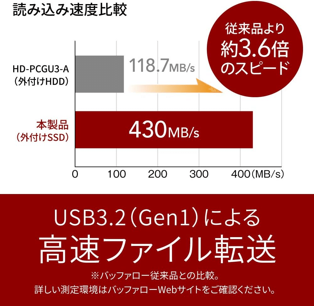 これは良いです。スピードも速いし、このサイズはありがたいです。SSD-PUT1.0U3も小さかったけど、これは驚きです。落としたら探すのが大変!