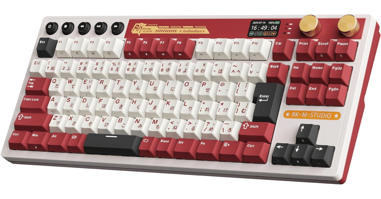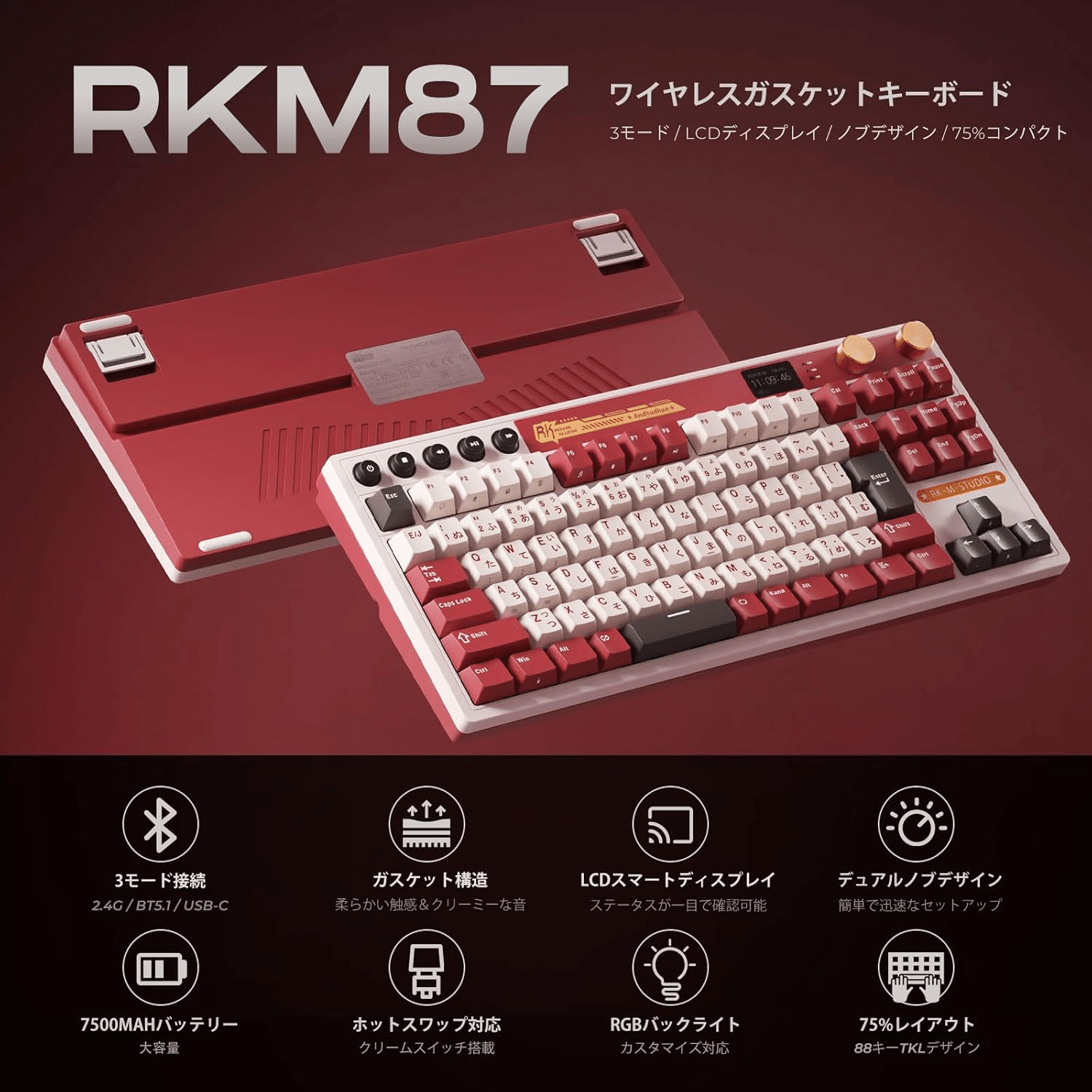Title 【Amazon.co.jp限定】RK ROYAL KLUDGE M87 ワイヤレスゲーミングキーボード|日本語配列|LCDスクリーン&デュアルノブ搭載|75%サイズ・ガスケットマウント構造|2.4G/Bluetooth/USB-C接続|7500mAhバッテリー・RGBバックライト|ホットスワップ対応クリームスイッチ|レッド