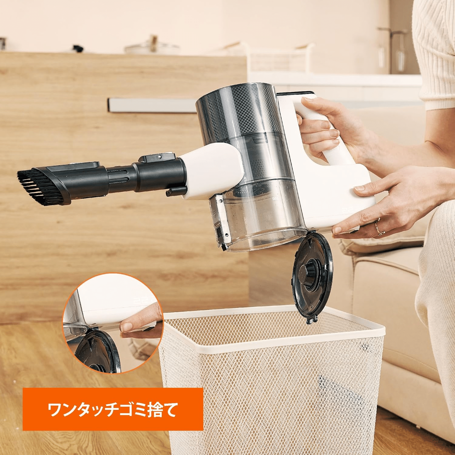 LEDライトが暗い場所のゴミを見やすくしてくれる。ソファの下も簡単に掃除できて便利!