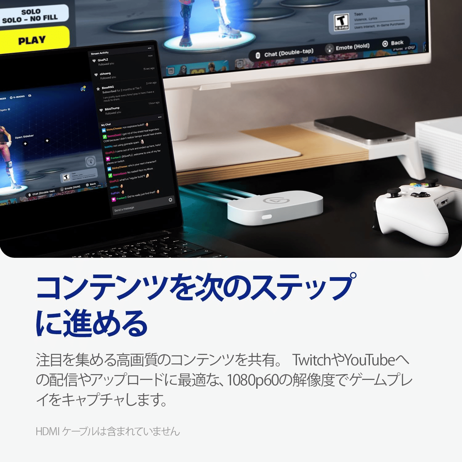 ゲーム実況や動画制作を始めるなら、Elgato Game Capture Neoは最適な選択肢です。このUSBポータブルキャプチャカードは、4K60 HDRパススルーと1080p60録画に対応し、PS5、Xbox、Nintendo Switch 2、iPhoneなど幅広いデバイスで使用可能です。プラグアンドプレイで設定が簡単、初心者からプロまで満足のいく高品質な映像を提供します。OBSやQuickTimeなど、さまざまなアプリとも互換性があり、遅延なくスムーズな配信や録画が可能です。コンパクトで持ち運びやすく、環境に配慮したパッケージも魅力です。