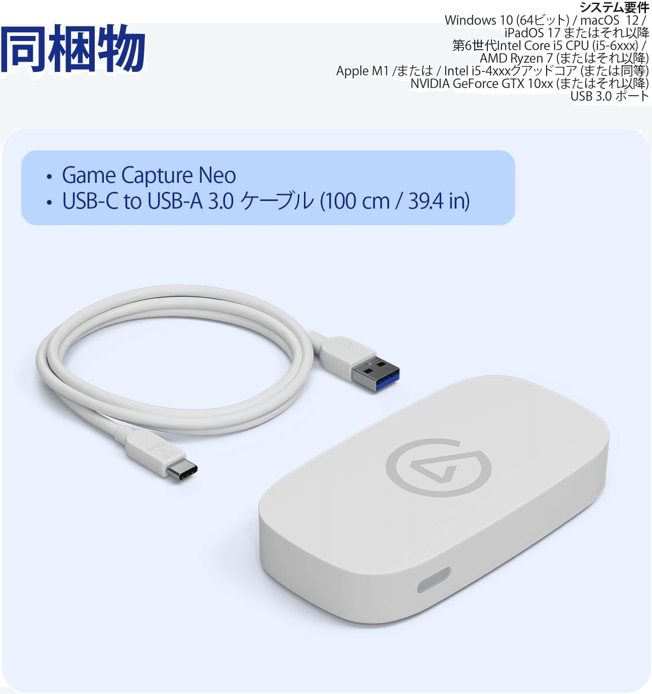 Title 【Amazon.co.jp限定】Elgato Game Capture Neo – USB ポータブルキャプチャカード 4K60 HDR パススルー、1080p60 ビデオ録画 – PS5/Xbox/Nintendo Switch 2/iPhone対応 – OBS、Quicktime、その他に最適 – プラグアンドプレイ/ノートPC、PC、Mac、iPad対応