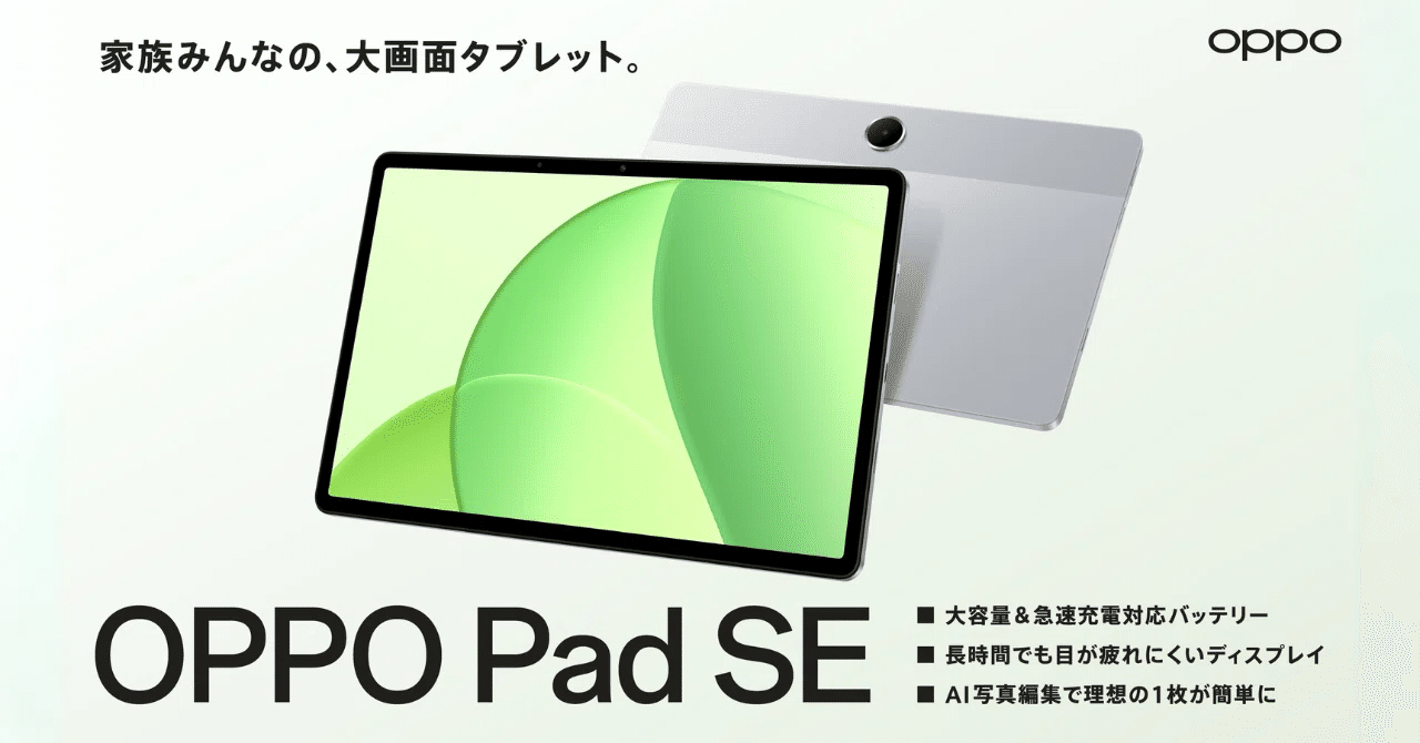 OPPO Pad SEは、2025年9月25日に発売される新しいAndroidタブレットです。このデバイスは、手頃な価格ながら大容量バッテリーと目に優しいディスプレイを備え、家族みんなで活用できる設計が魅力です。11インチの大型画面で動画視聴や読書が快適で、AIを活用した写真編集機能も搭載しています。MediaTek Helio G100プロセッサにより、日常使いに十分なパフォーマンスを発揮します。キッズモードやiOSデバイスとの連携機能により、安心して共有可能です。こうした特徴から、初めてのタブレットやセカンドデバイスとしておすすめです。価格はWi-Fiモデルで25,400円とコスパも優れています。入手した情報に基づくと、発売直後から人気を集めそうです。家族のデジタルライフをアップデートする一台として、注目を集めています。日常のさまざまなシーンで活躍するでしょう。