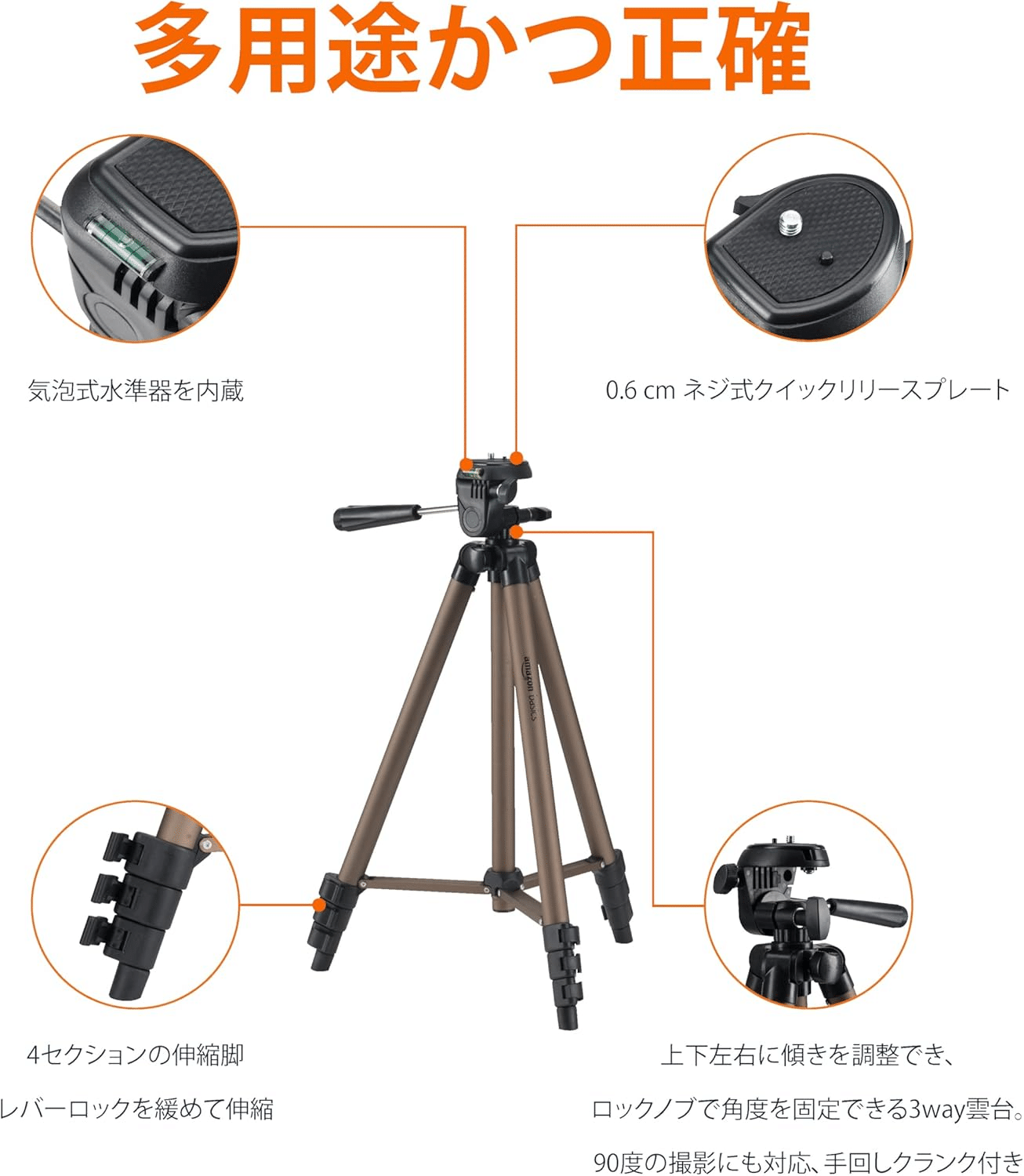 多用途かつ正確 – Amazonベーシック 軽量三脚 127cm シャンパン