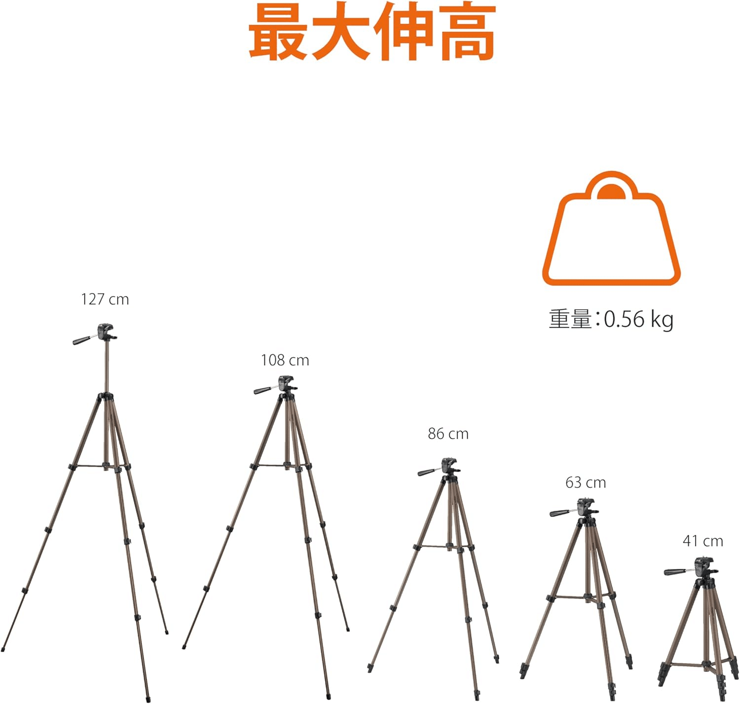最大伸高 – Amazonベーシック 軽量三脚 127cm シャンパン