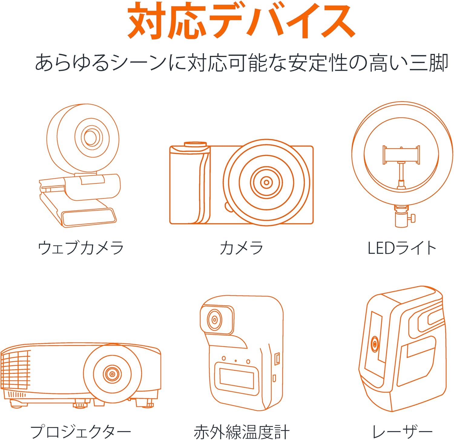 対応デバイス – Amazonベーシック 軽量三脚 127cm シャンパン