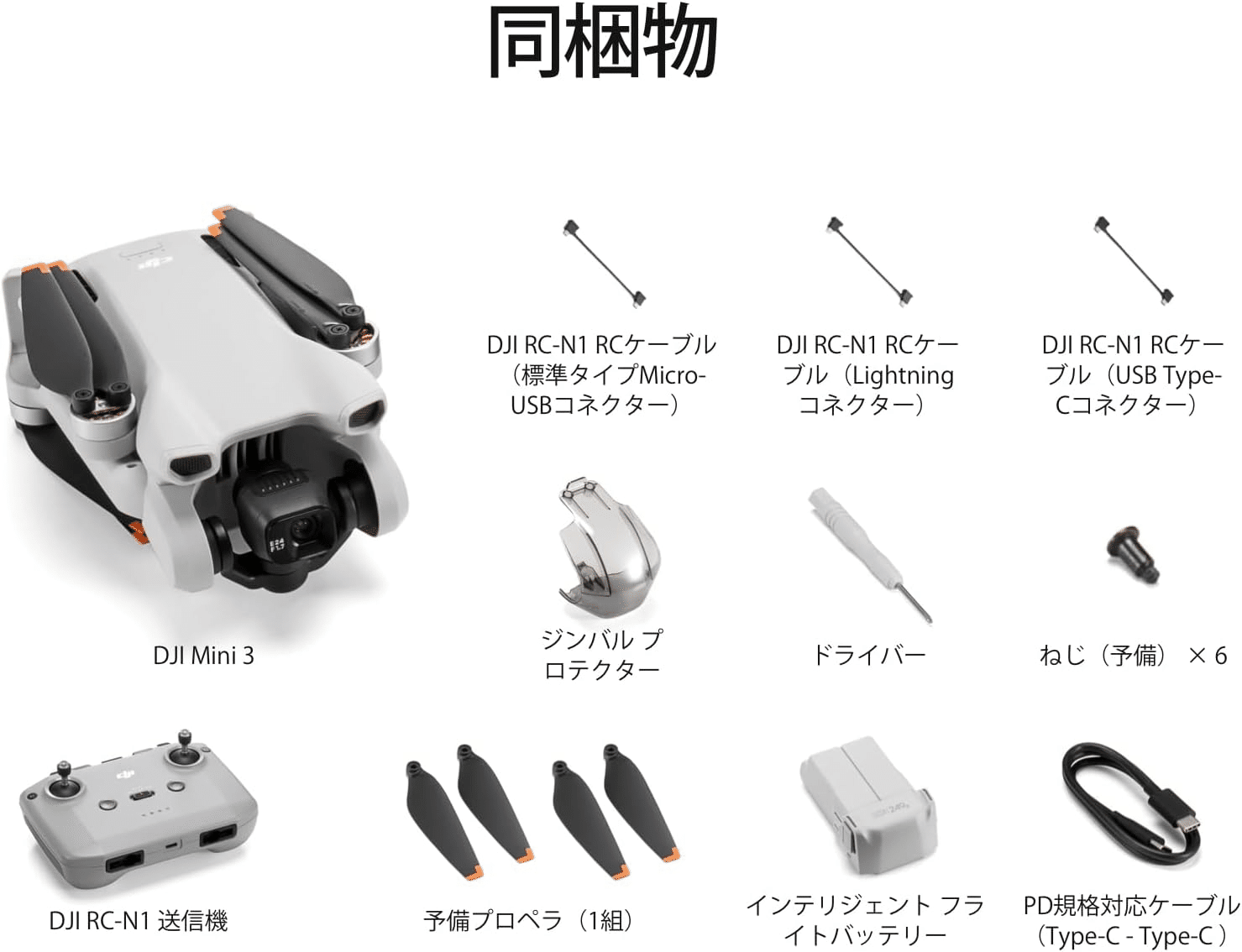 Title DJI Mini 3(N1送信機付き) カメラドローン 撮影 小型 リモートID対応 4K HDR動画撮影 38分飛行時間 縦向き撮影 インテリジェント機能搭載 折り畳み式 軽量 ミニドローン カメラ付き(送信機は別売) 賠償責任保険1年無償付き グレー