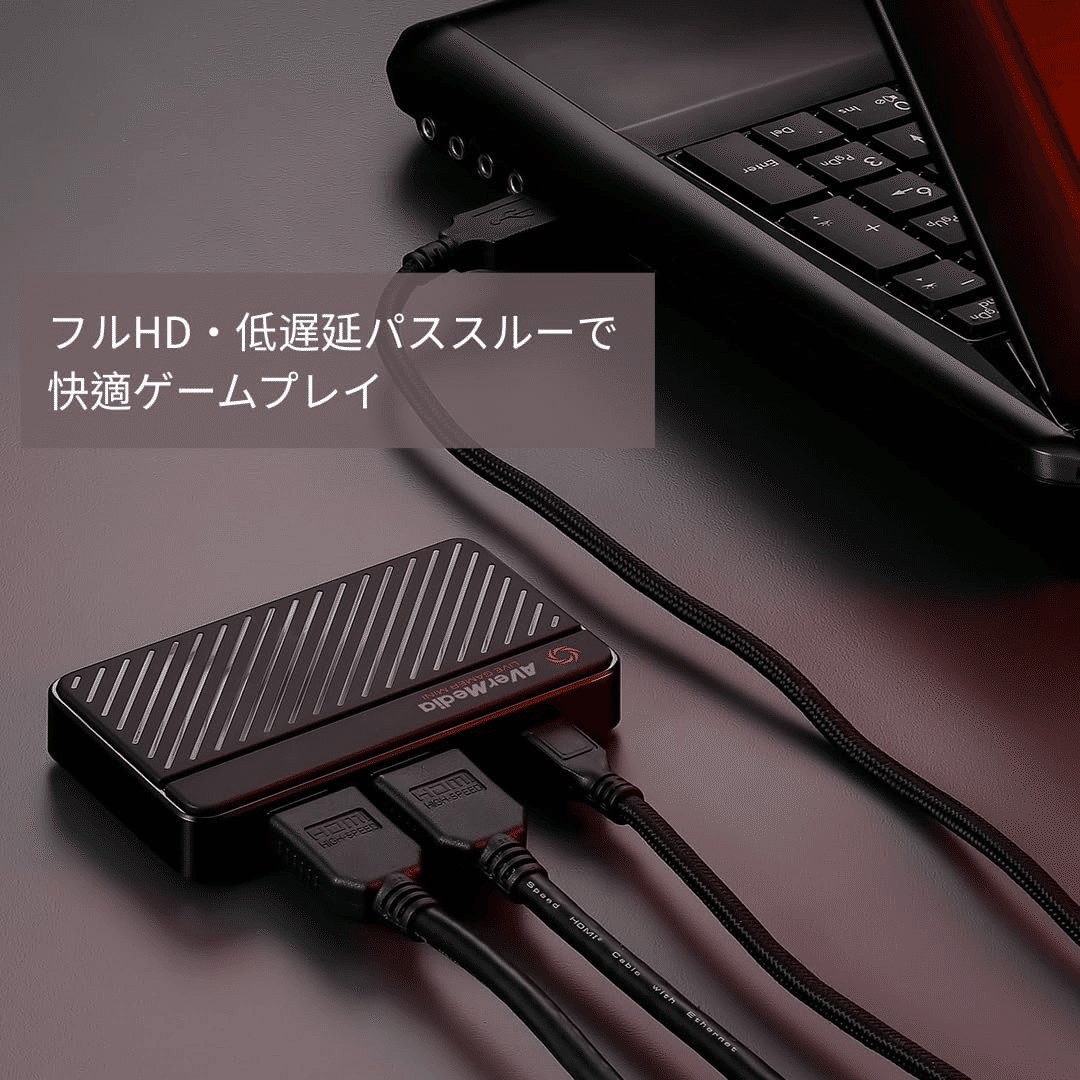 HDMIパススルーで遅延ゼロなのが最高。FPSゲームでも快適にプレイしながら録画できるよ。