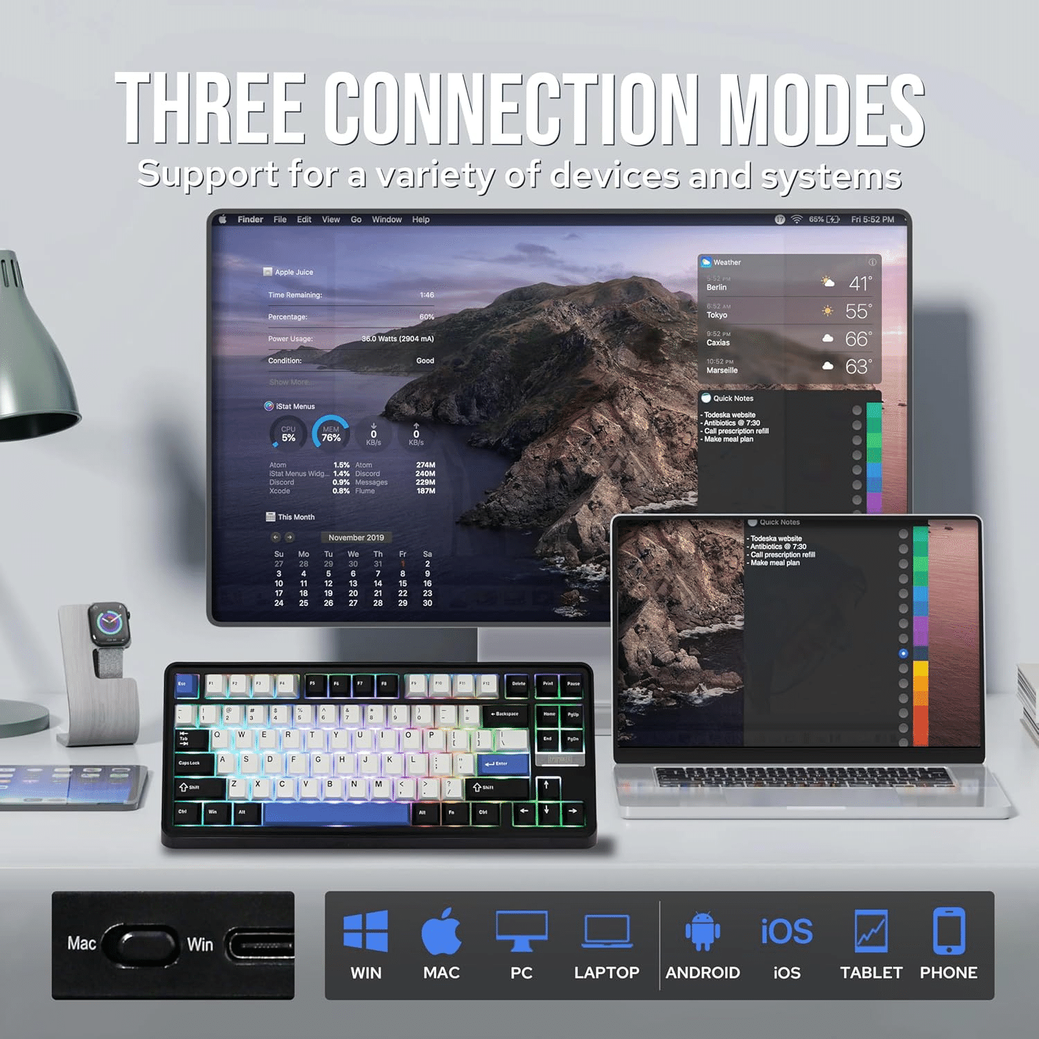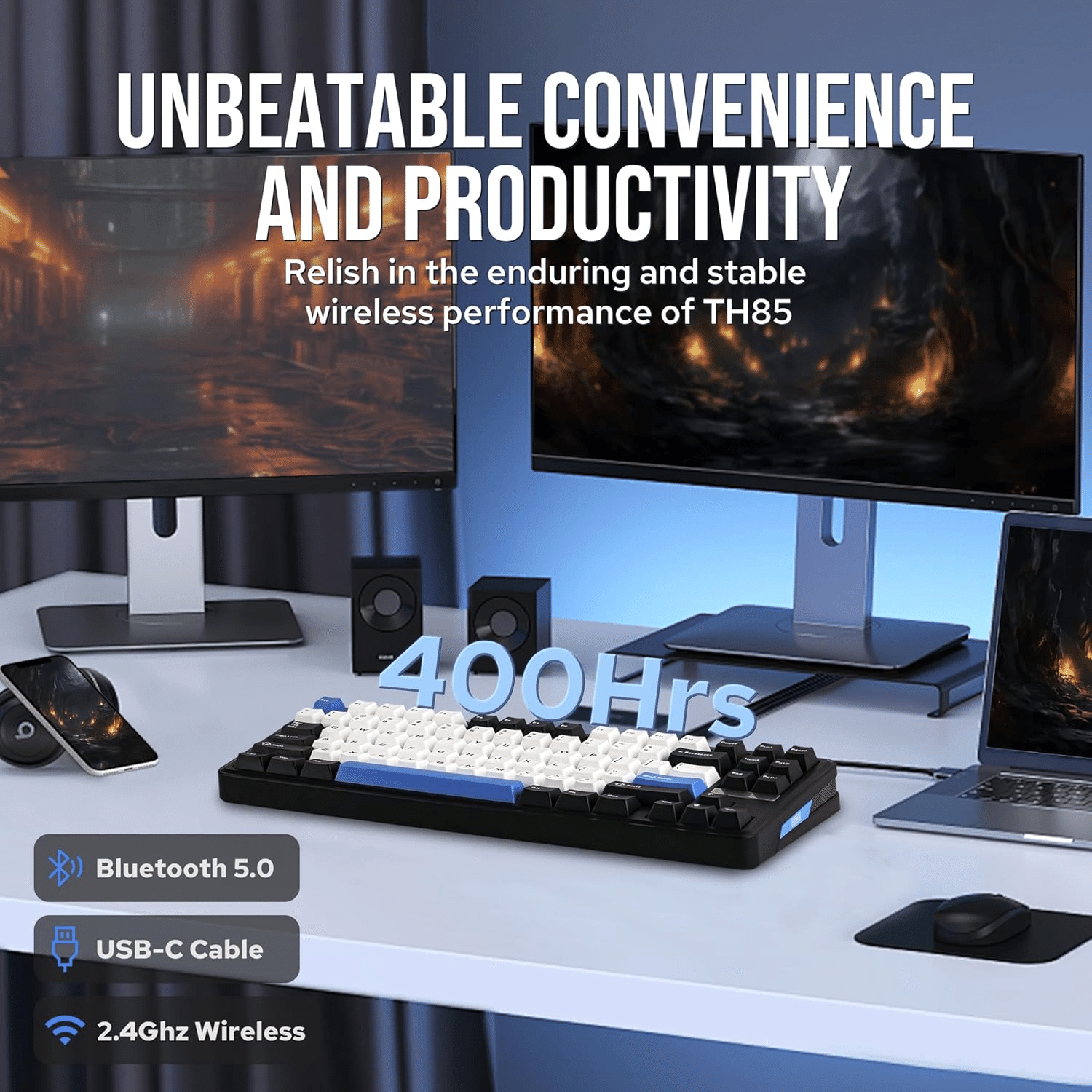 THREE CONNECTION MODES – EPOMAKER TH85 Black White Blue キーボード