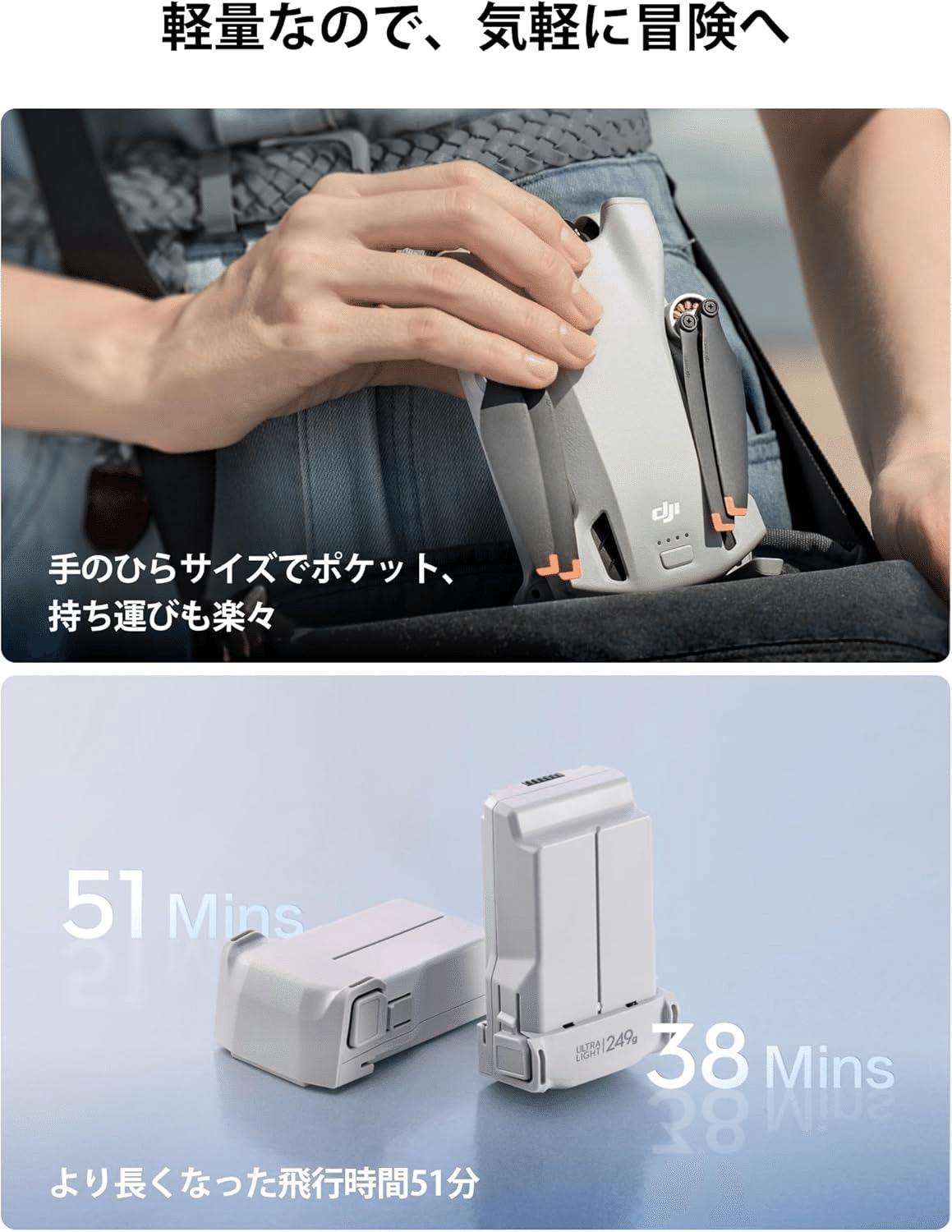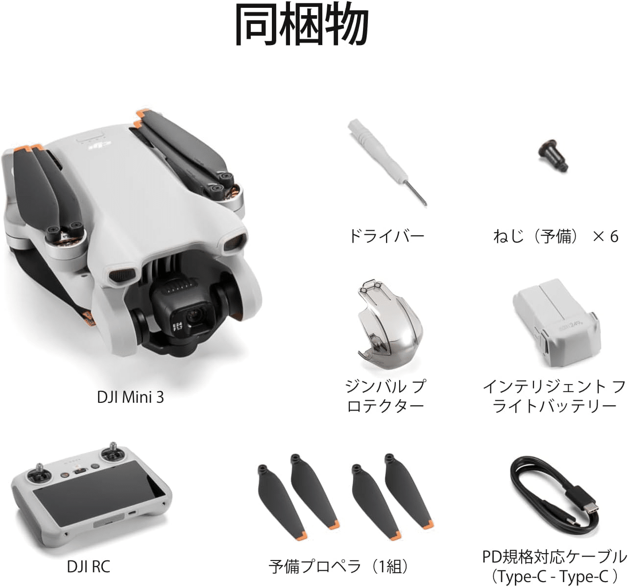 Title DJI Mini 3( RC リモコン付属) 4K HDR動画撮影 38分飛行時間 縦向き撮影 インテリジェント機能搭載 折りたたみ式 軽量 ミニカメラドローン グレー 賠償責任保険1年無償付き【リモートID対応】