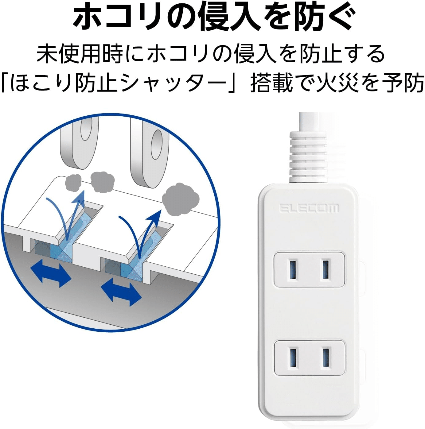 ホコリの侵入を防ぐ – エレコム電源タップ3個口3mホワイトT-ST02N-2330WH