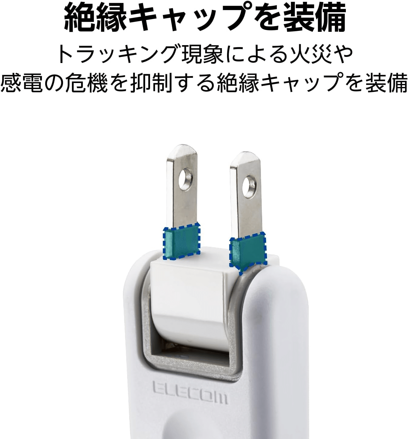 絶縁キャップを装備 – エレコム電源タップ3個口3mホワイトT-ST02N-2330WH
