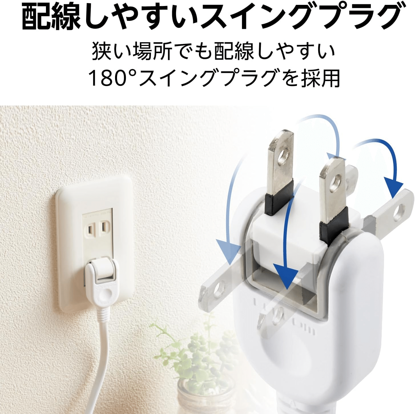 配線しやすいスイングプラグ – エレコム電源タップ3個口3mホワイトT-ST02N-2330WH