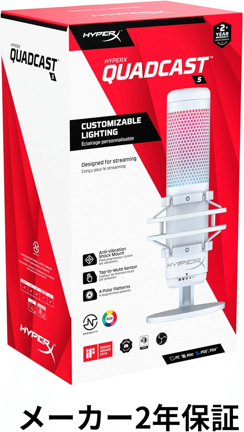 Title HyperX QuadCast S スタンドアロンマイク RGBライティング ホワイト テレワーク/ストリーマー/コンテンツクリエーター/ゲーマー向け/PC,PS4,PS5使用可能 2年保証 519P0AA