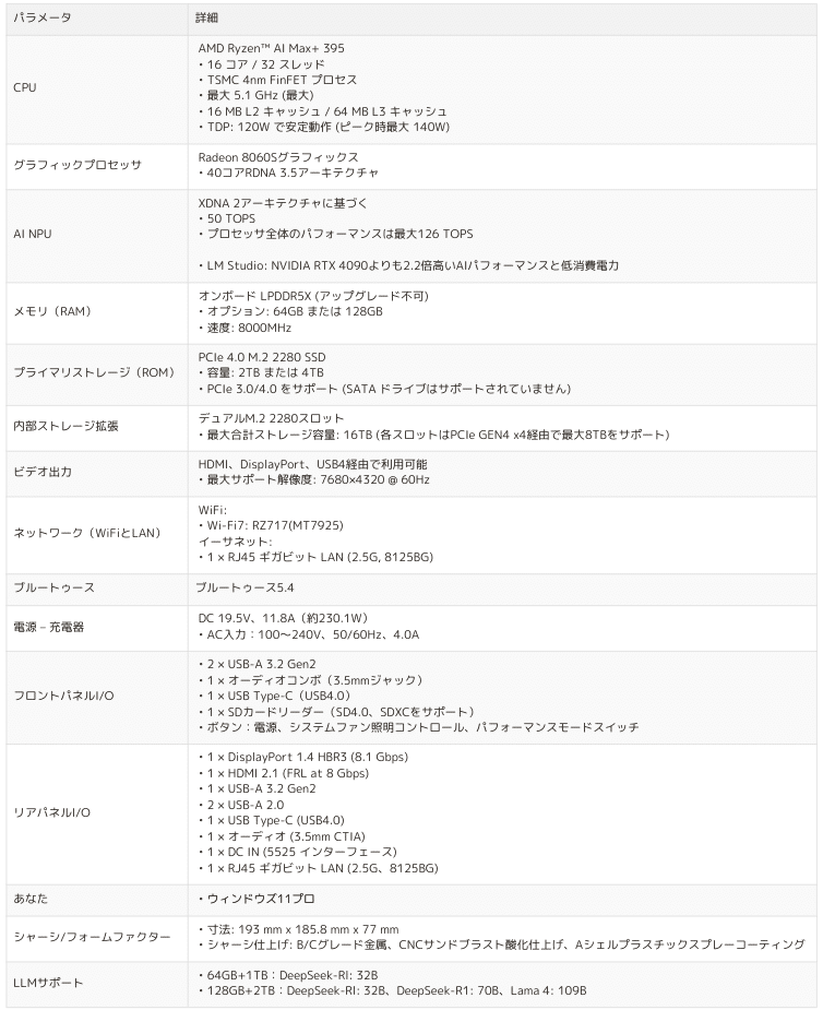 ちなみにEVO-X2はメモリ帯域幅が256GB/sなので、ローカルLLMにはそこまで期待していなくて、主な購入理由は下記の通りです。