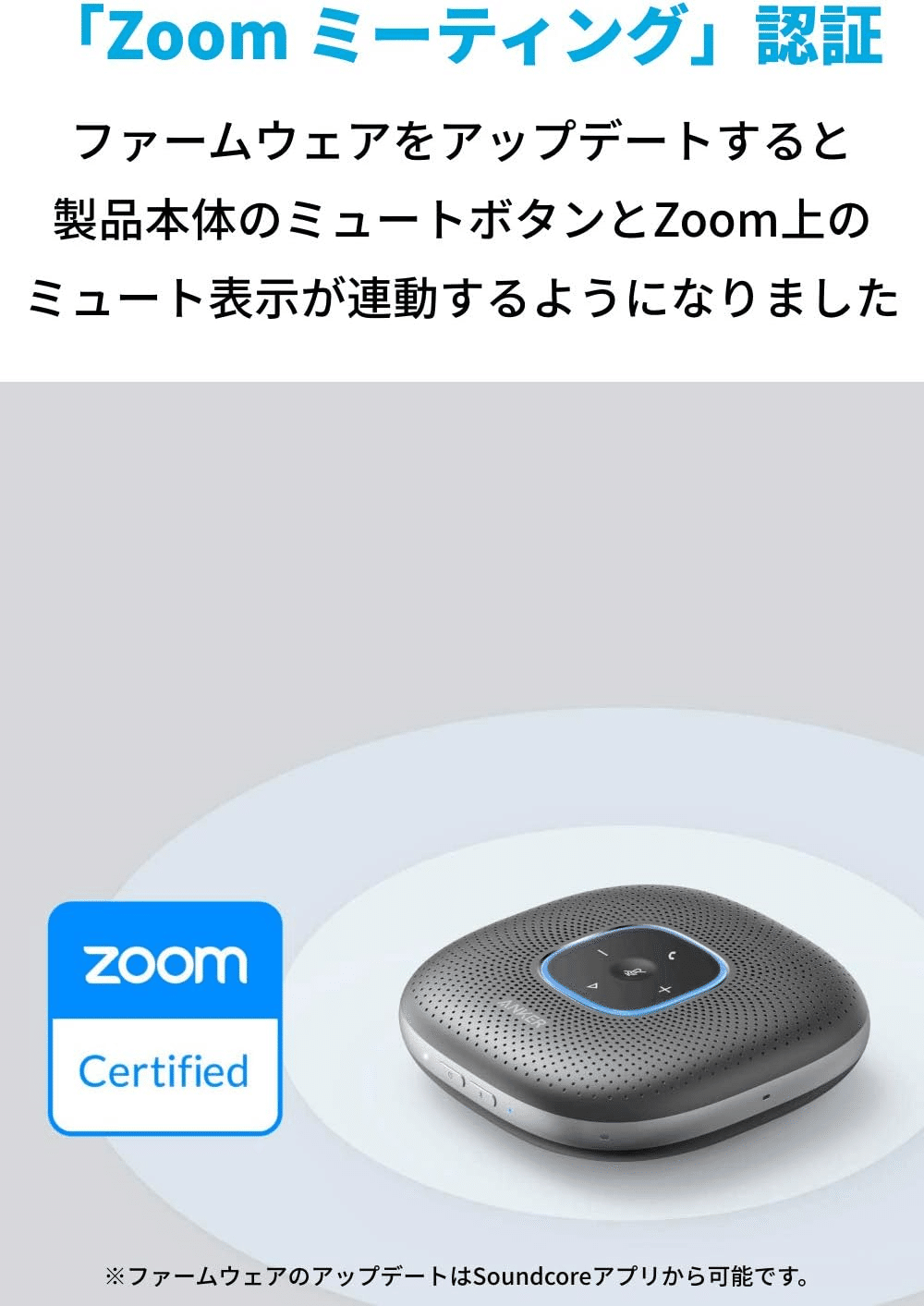 「Zoom ミーティング」認証 – Anker PowerConf スピーカーフォン グレー メタリック