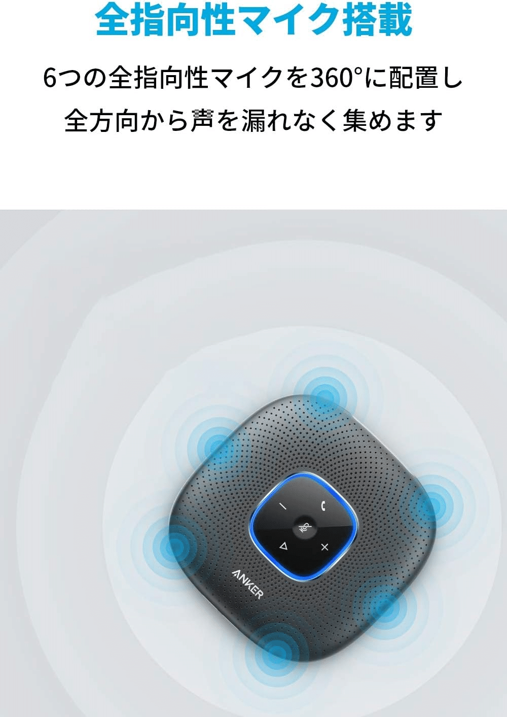 全指向性マイク搭載 – Anker PowerConf スピーカーフォン グレー メタリック