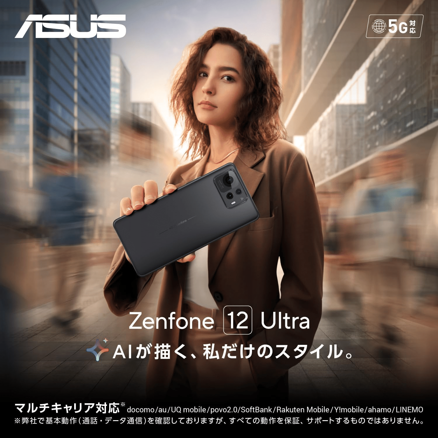 Title ASUS スマートフォン Zenfone 12 Ultra【日本正規代理店品】エボニーブラック ZF12U-BK16S512/A docomo/au/SoftBank/Y!mobile/ahamo/povo/LINEMO/楽天モバイル 回線対応 6.78型 ワイド 防水/防塵(IP65IP68) 5G / イヤホンジャック/Felica