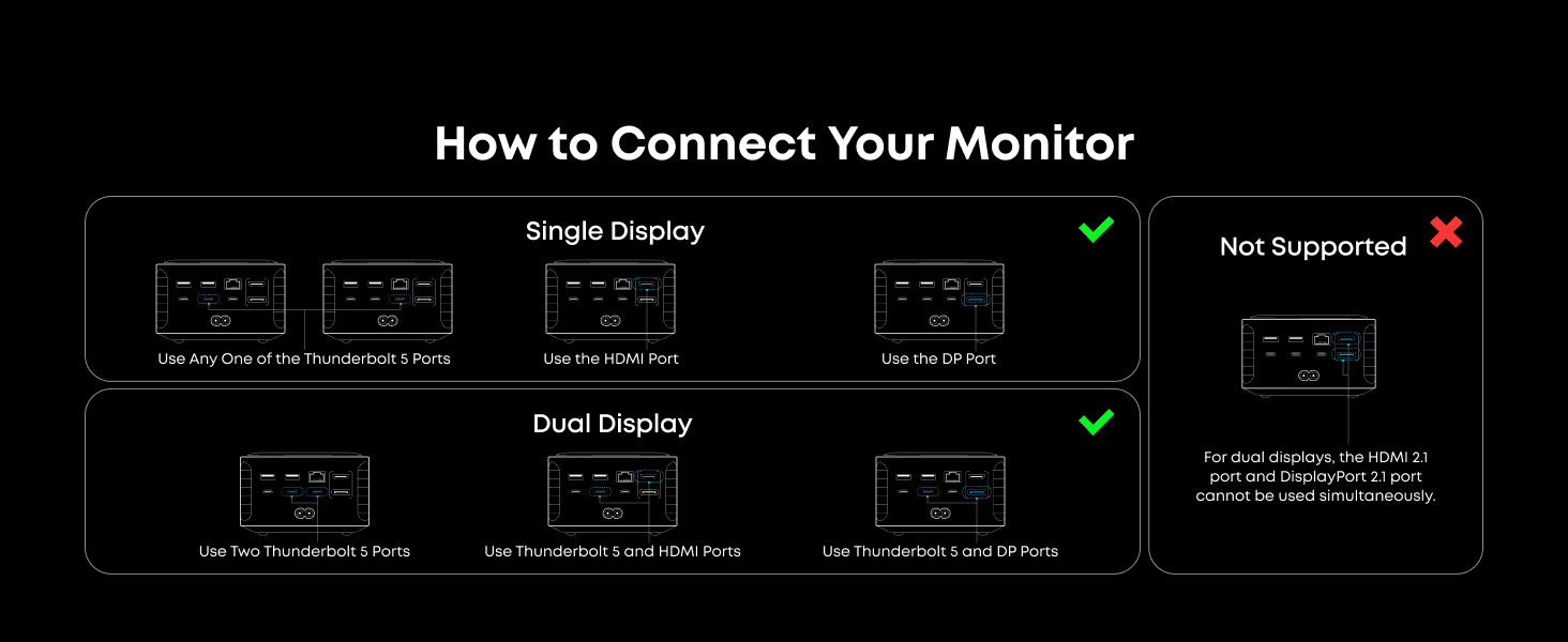1. The HDMI 2.1 port and DisplayPort 2.1 port cannot be used simultaneously.
