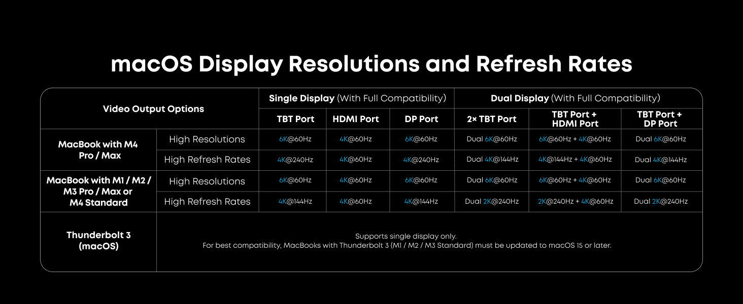 2. The minimum macOS version required to use this Thunderbolt 5 dock is macOS 15 or later.