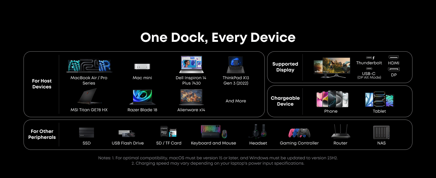 Note: This dock is not compatible with Thunderbolt 3 laptops or monitors—including those with Windows or Intel-based MacBooks—and does not support ChromeOS or Linux systems.