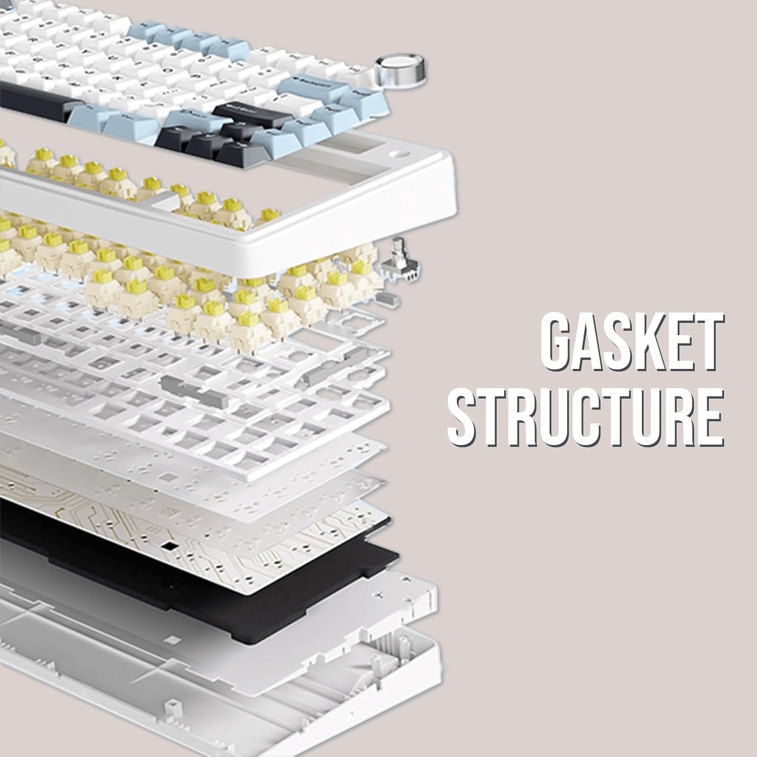 防音:5層構造(Poronフォームx2、IXPEスイッチパッド、PETサウンド強化パッド、底面シリコンパッド)