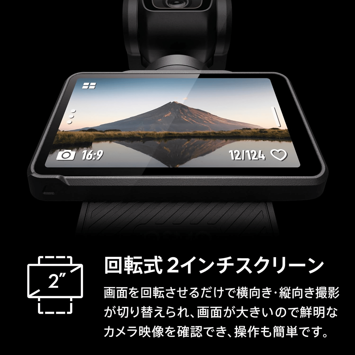 DJI Osmo Pocket 3は、コンパクトながら高性能なVlog用カメラとして注目を集めています。1インチCMOSセンサーを搭載し、4K/120fpsの滑らかな動画撮影が可能です。3軸ジンバルスタビライザーにより、手ブレを抑えた安定した映像を撮影でき、回転式2インチタッチスクリーンで直感的な操作を実現。高速フォーカスや顔・被写体トラッキング機能も備え、Vlogやアクション撮影に最適です。軽量で持ち運びやすく、初心者からプロまで幅広く対応する一台です。