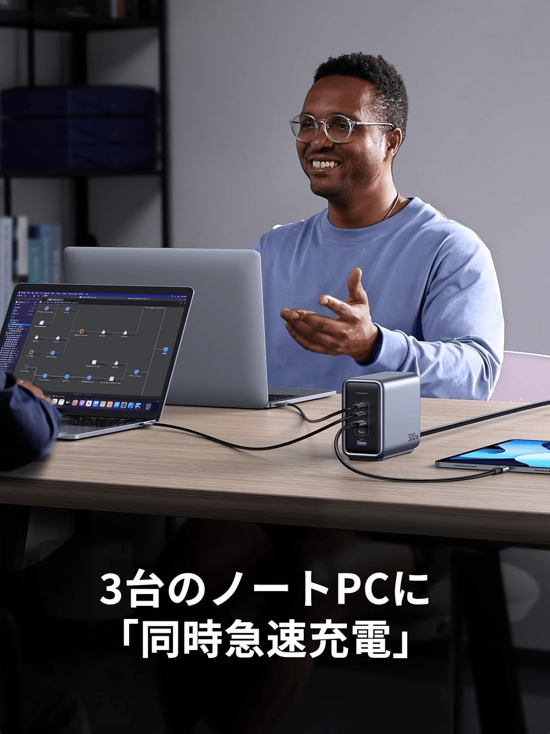 3台のノートPCに 「同時急速充電」 – UGREEN Nexode 300W 5ポート急速充電器