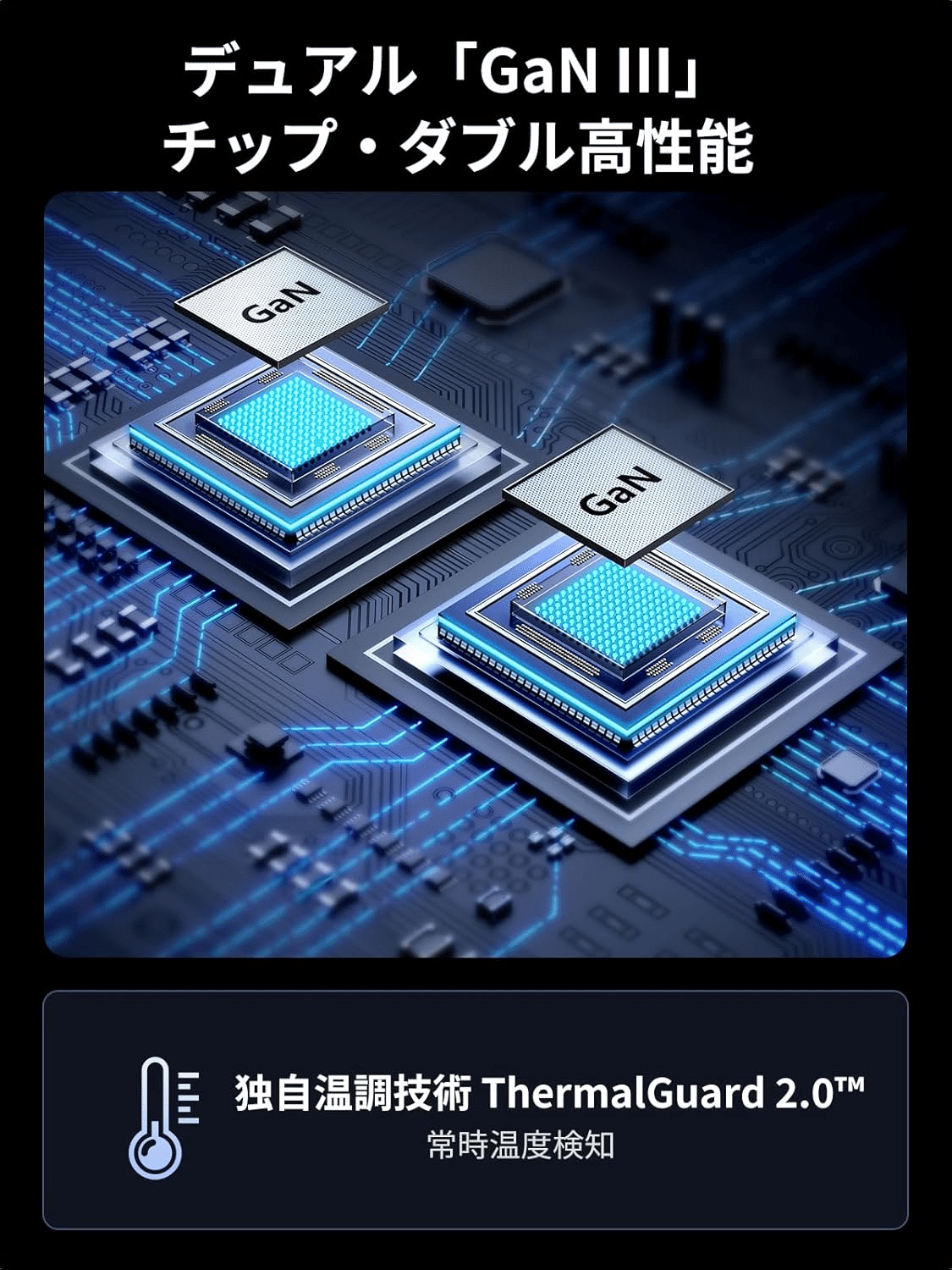 • 技術: ダブルGaNFastⅢ(窒化ガリウム)