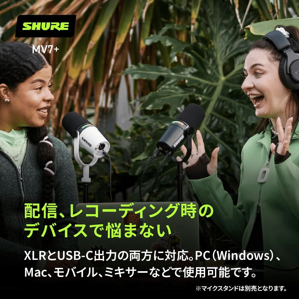 配信、レコーディング時のデバイスで悩まない – SHURE MV7+ ポッドキャストマイク ブラック