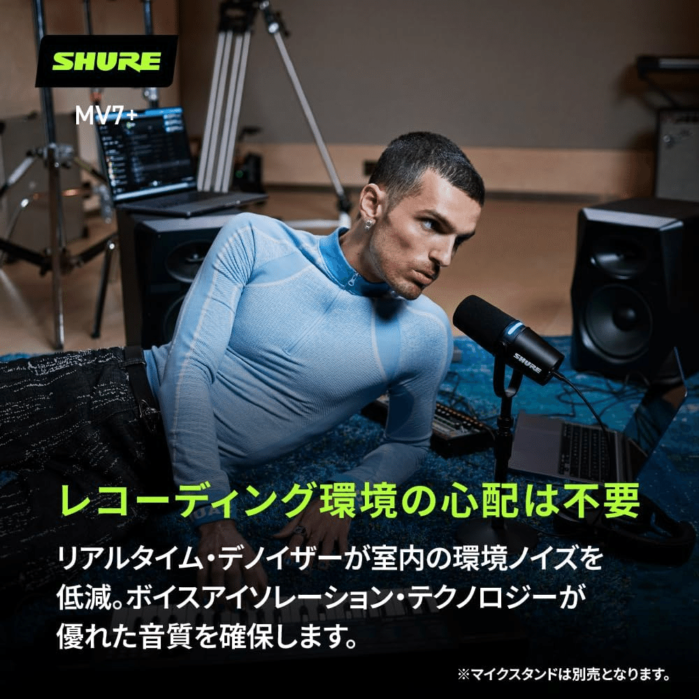 レコーディング環境の心配は不要 – SHURE MV7+ ポッドキャストマイク ブラック