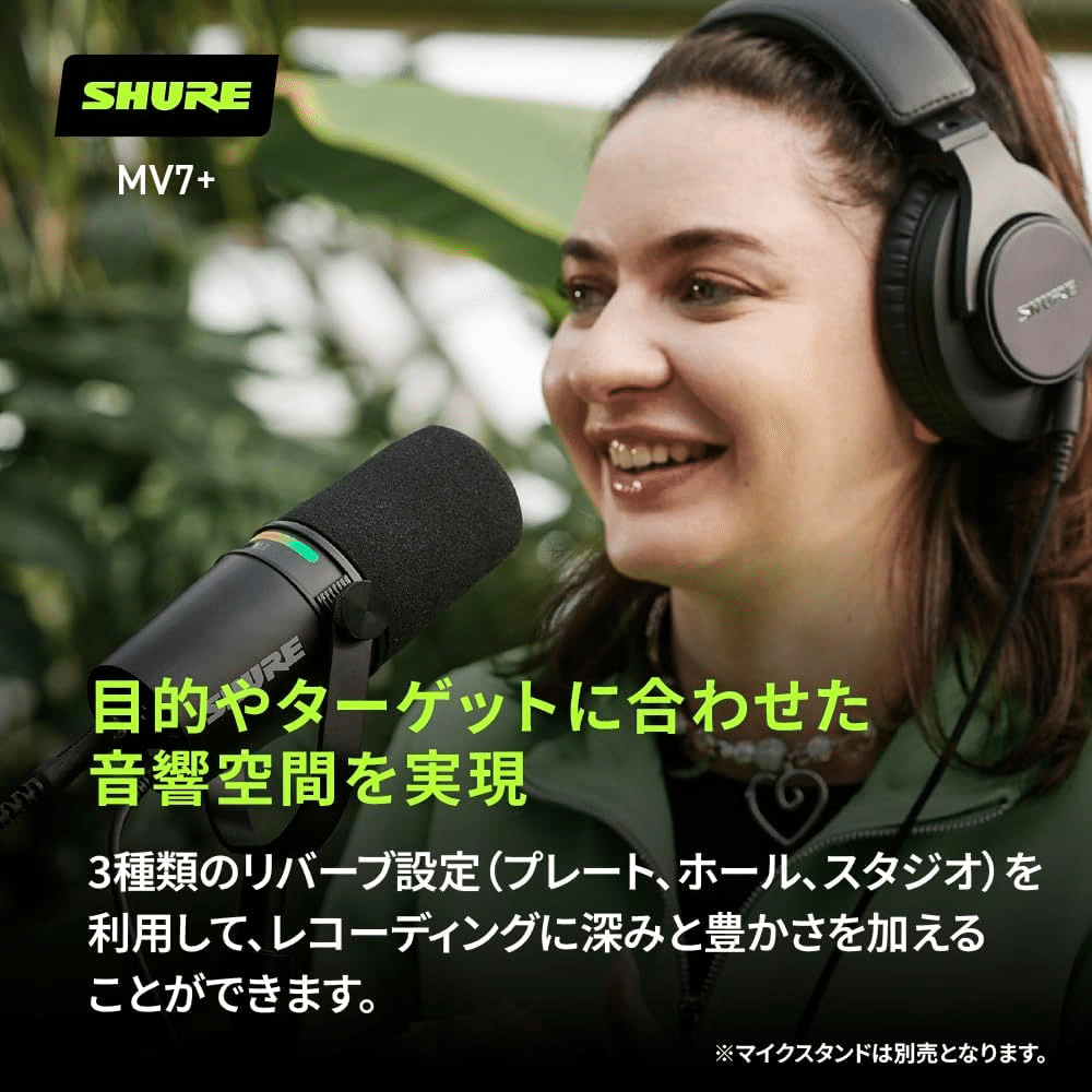 目的やターゲットに合わせた音響空間を実現 – SHURE MV7+ ポッドキャストマイク ブラック