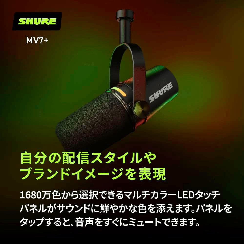 自分の配信スタイルやブランドイメージを表現 – SHURE MV7+ ポッドキャストマイク ブラック