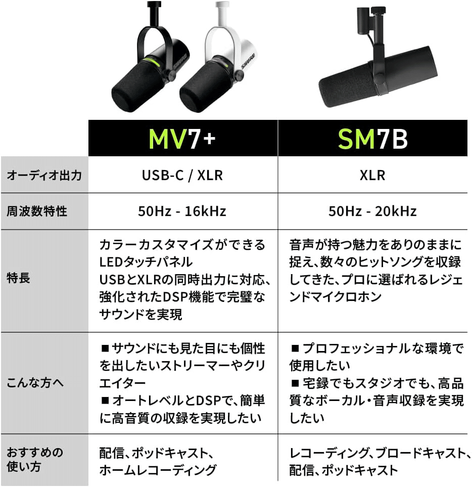 比較 – SHURE MV7+ ポッドキャストマイク ブラック