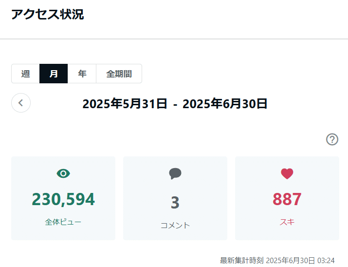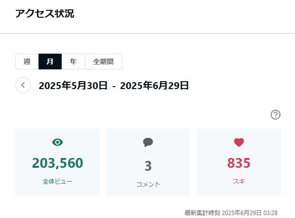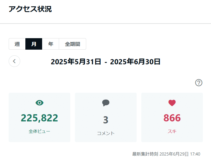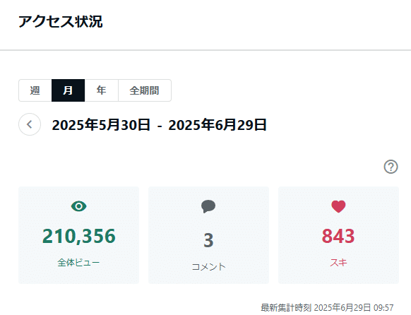 【20万PV】 2025年6月に本格始動したnoteは月間PV(過去30日)が20万アクセスを超えました✨