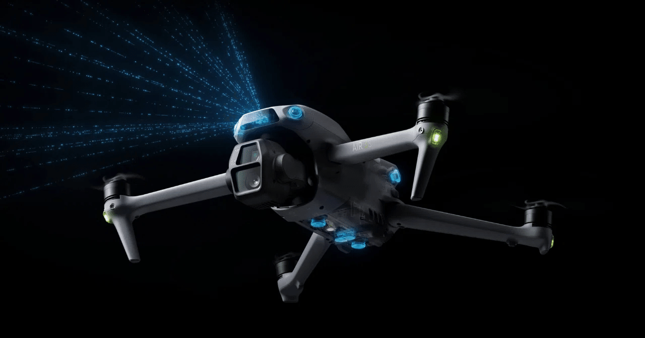 夜間機能が強化され、前方LiDAR追加で低光量下の安全性がアップ。内部ストレージも8GBから42GBへ大幅増。Air 3のストレージ不足を解消。