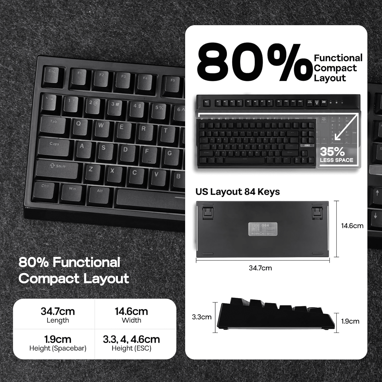 EPOMAKER G84 80% RGBメカニカルキーボード ブラック