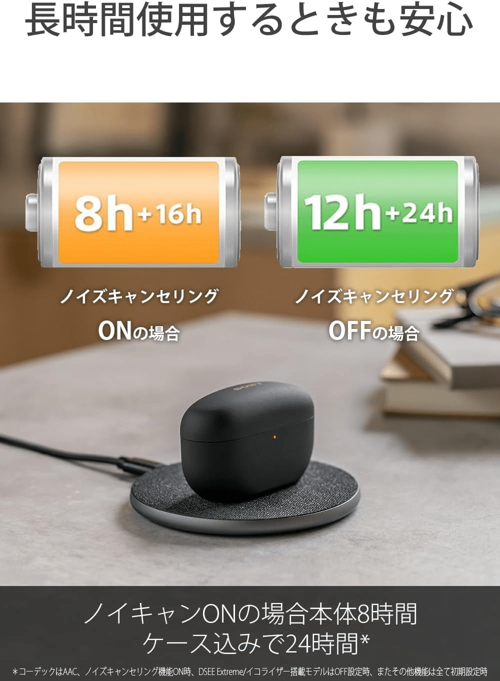 連続再生時間: 最大8時間(ノイズキャンセリングオン)