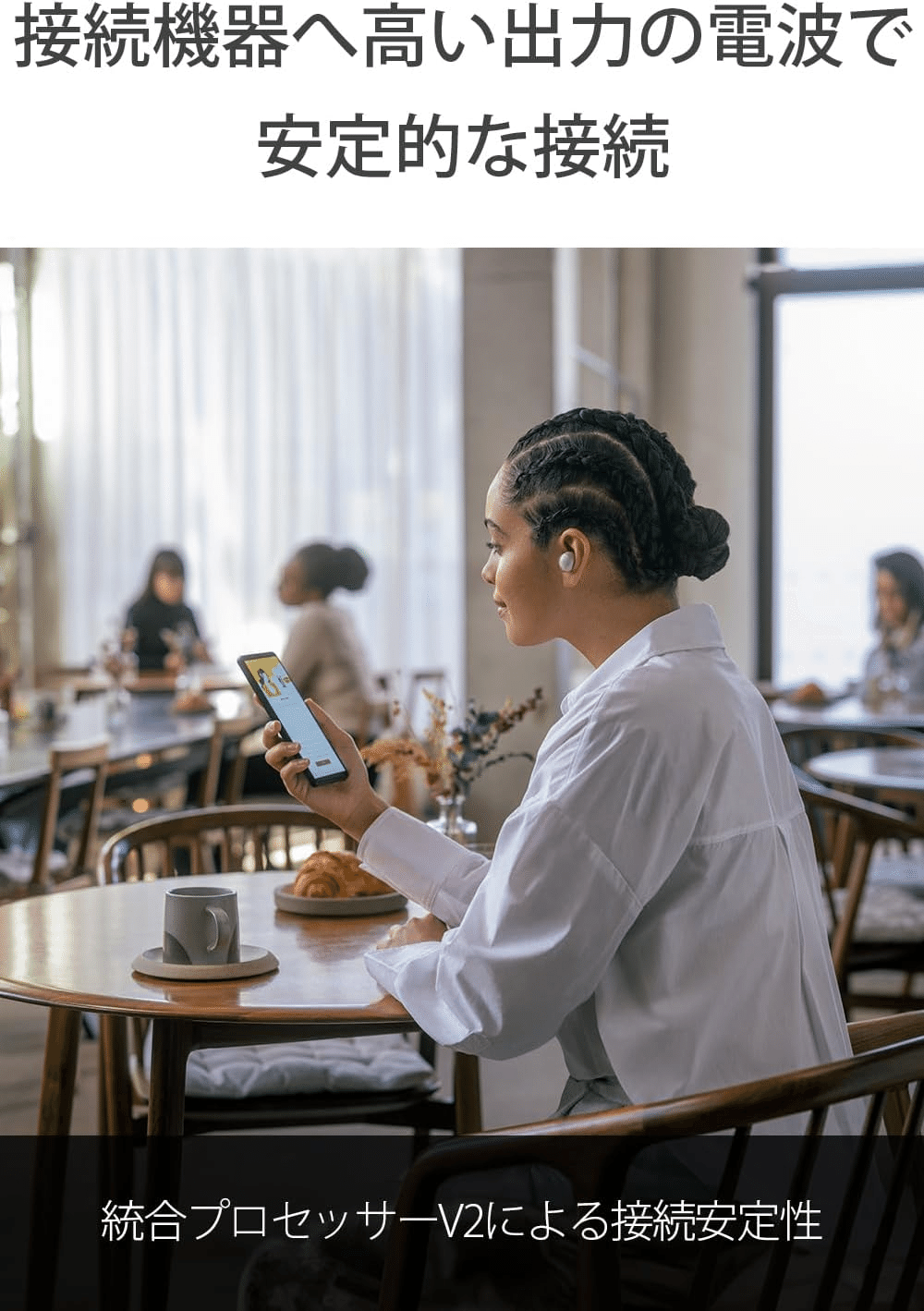 通話品質がクリアで、カフェでも相手の声がはっきり聞こえる