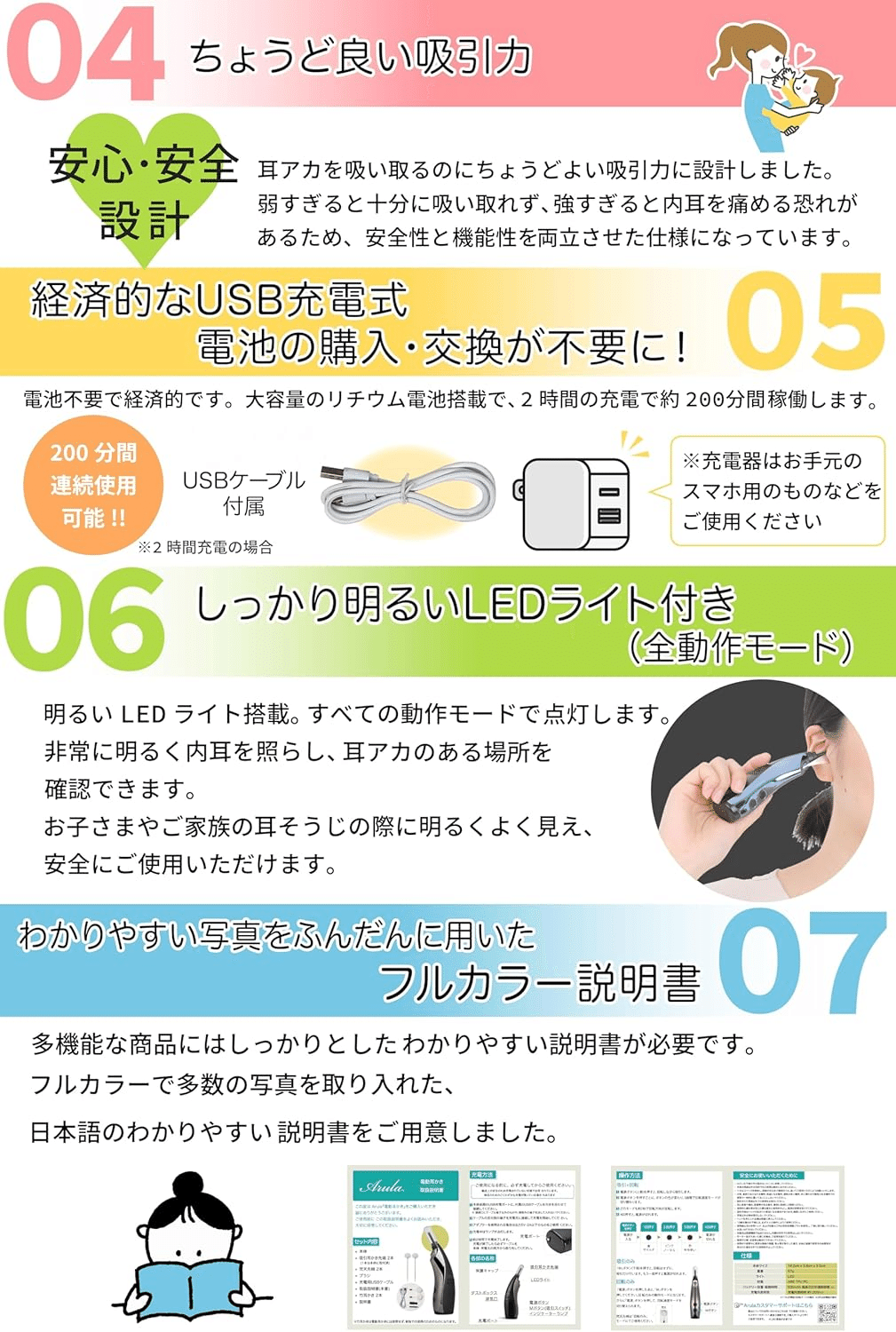 吸引力が抜群で、耳垢がスッキリ取れて感動。毎日のルーチンが楽しくなりました。