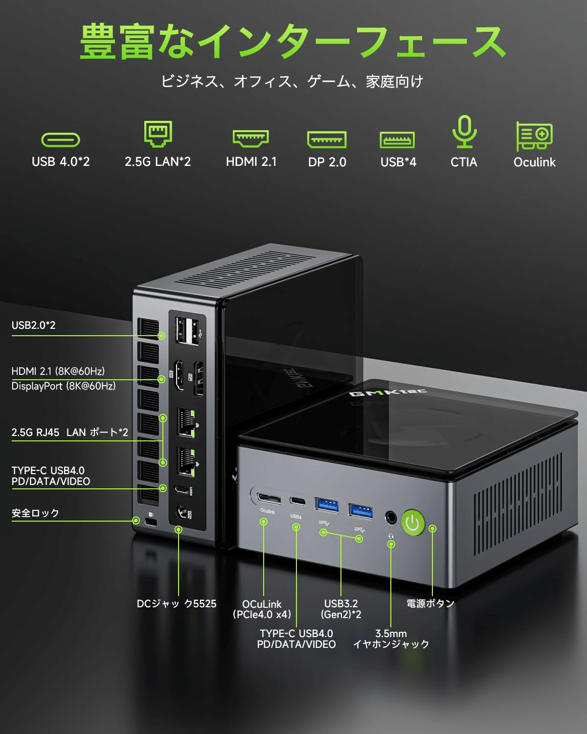 拡張ポート: Oculink (PCIe 4.0 x4)