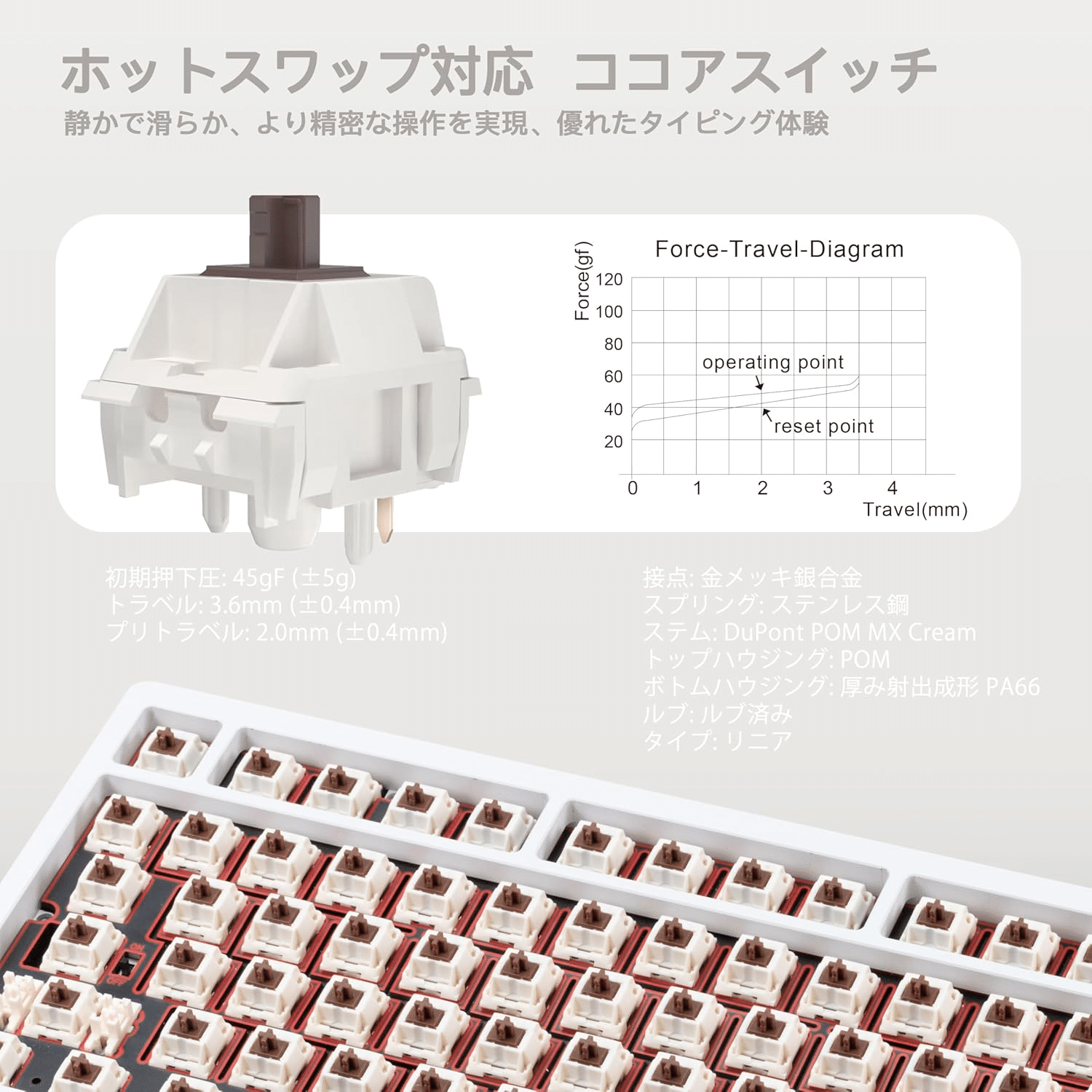 • スイッチ: ホットスワップ対応(HMX Violet/Cocoa/JWK選択可)