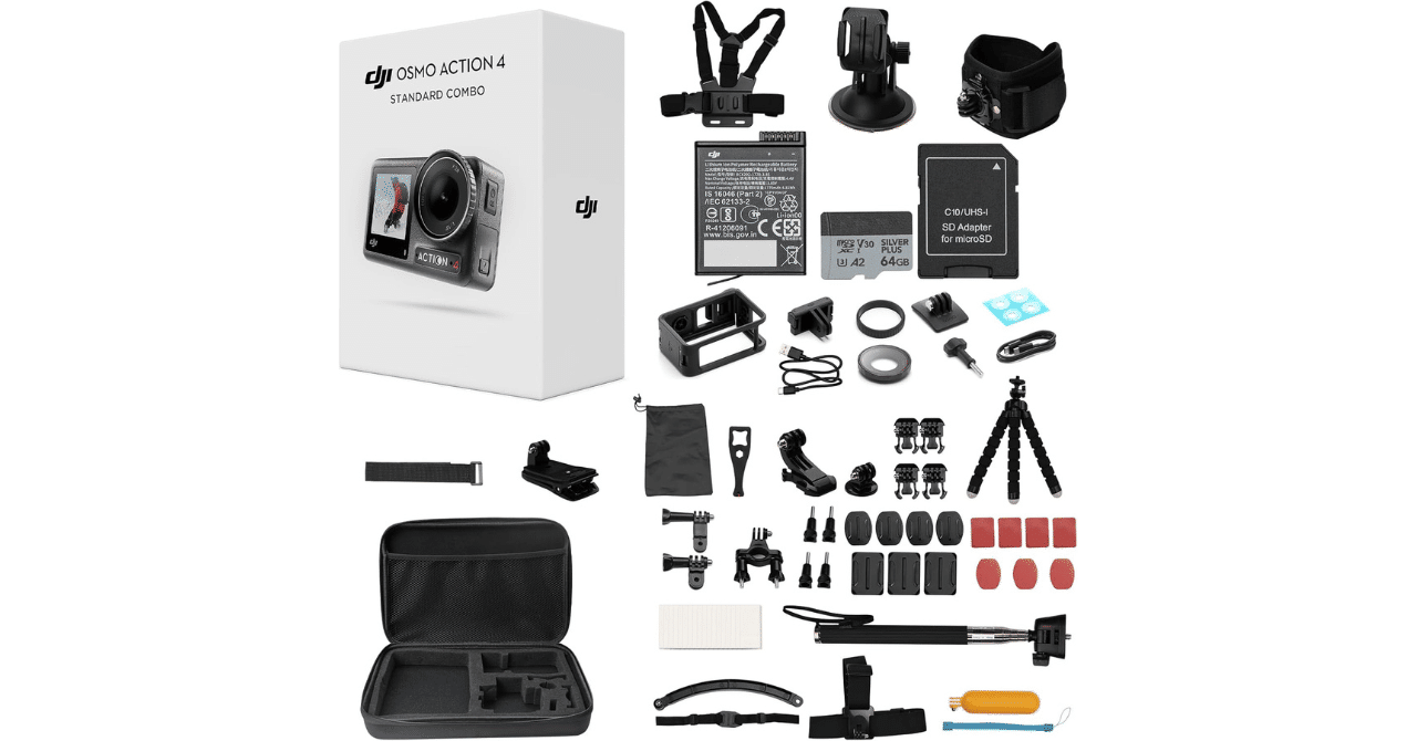 Title DJI Osmo Action 4 標準コンボ 50ピースアクセサリーキット + 64GBカード、4K/120fps防水アクションカメラ、1/1.3インチセンサー付き、160分長持ち、屋外カメラ(合計1バッテリー)