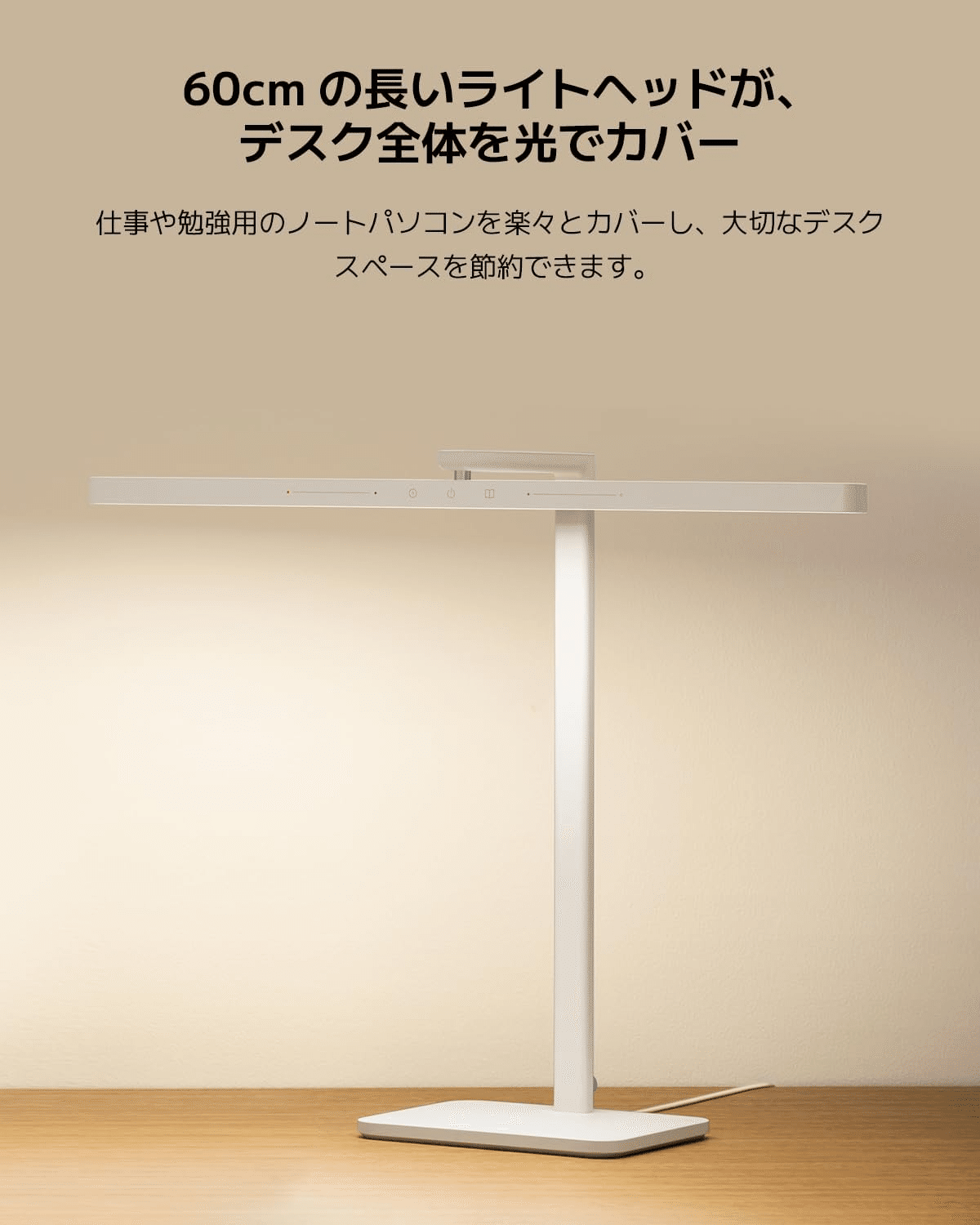 60cm の長いライトヘッドが、デスク全体で光でカバー – Xiaomi LEDデスクライト2 目に優しい60cm