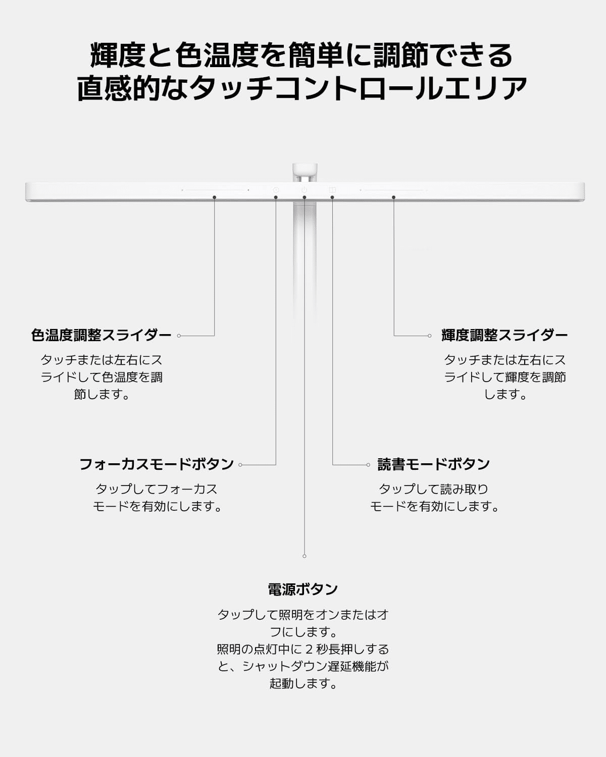 輝度と色温度を簡単に調整できる 直感的なタッチコントロールエリア – Xiaomi LEDデスクライト2 目に優しい60cm