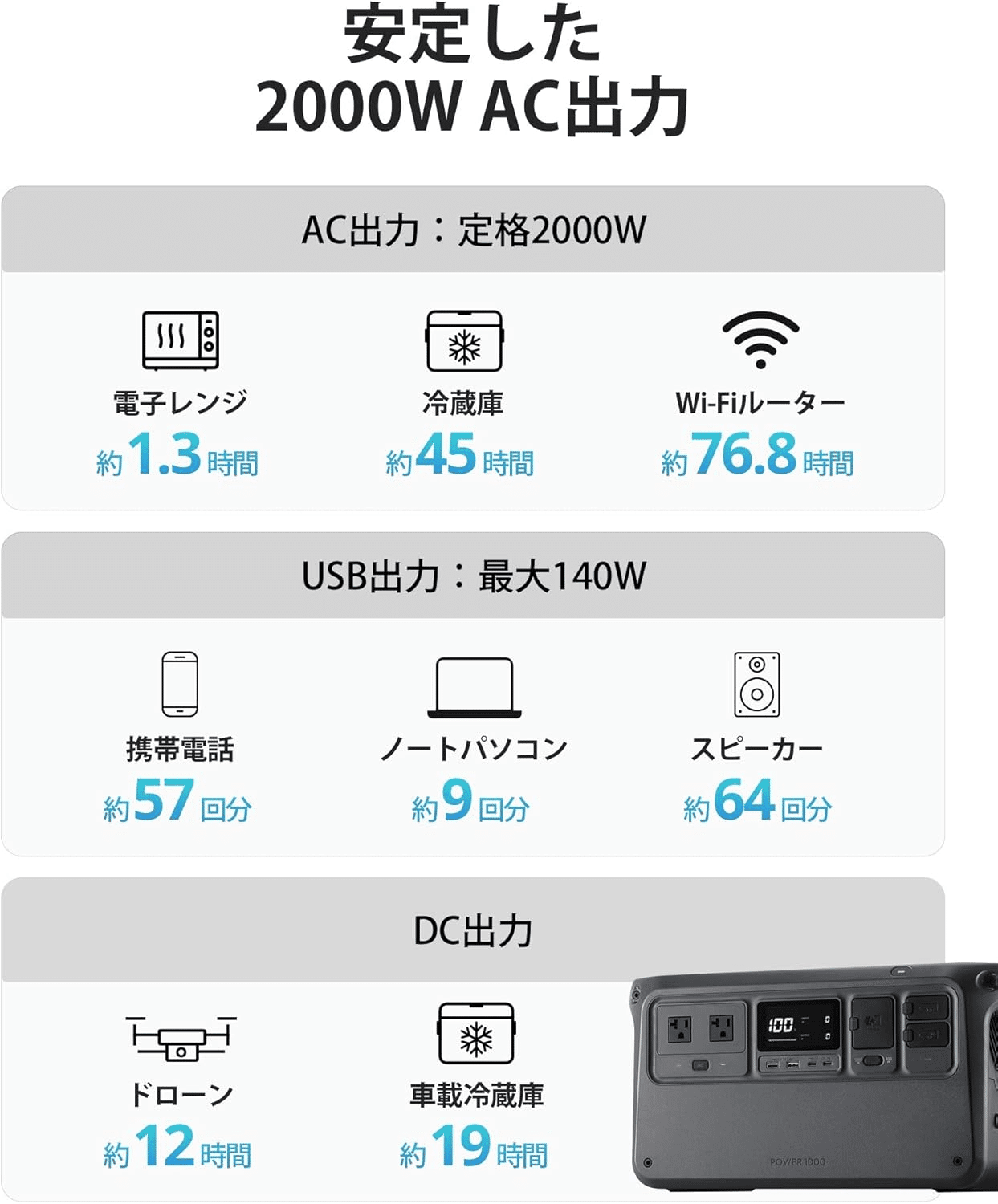 推奨用途 キャンプ、災害時電源、ドローン充電