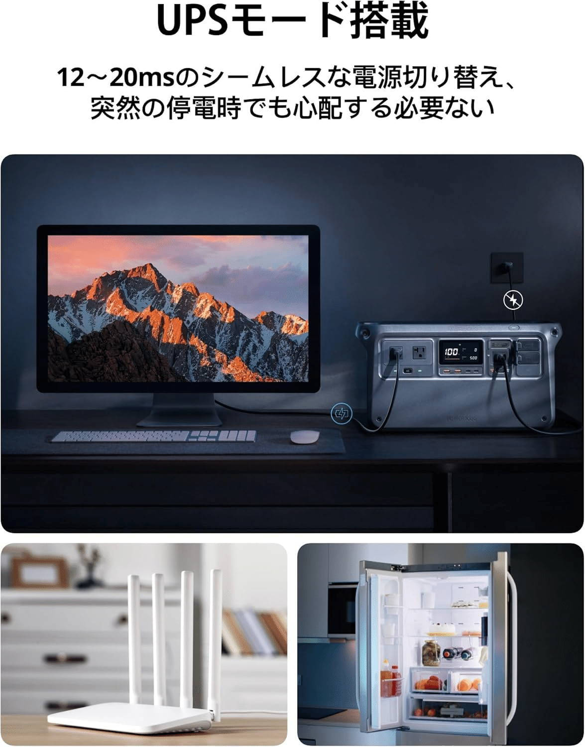 停電時にUPS機能が役立った。家電が途切れず動いて安心感がすごい