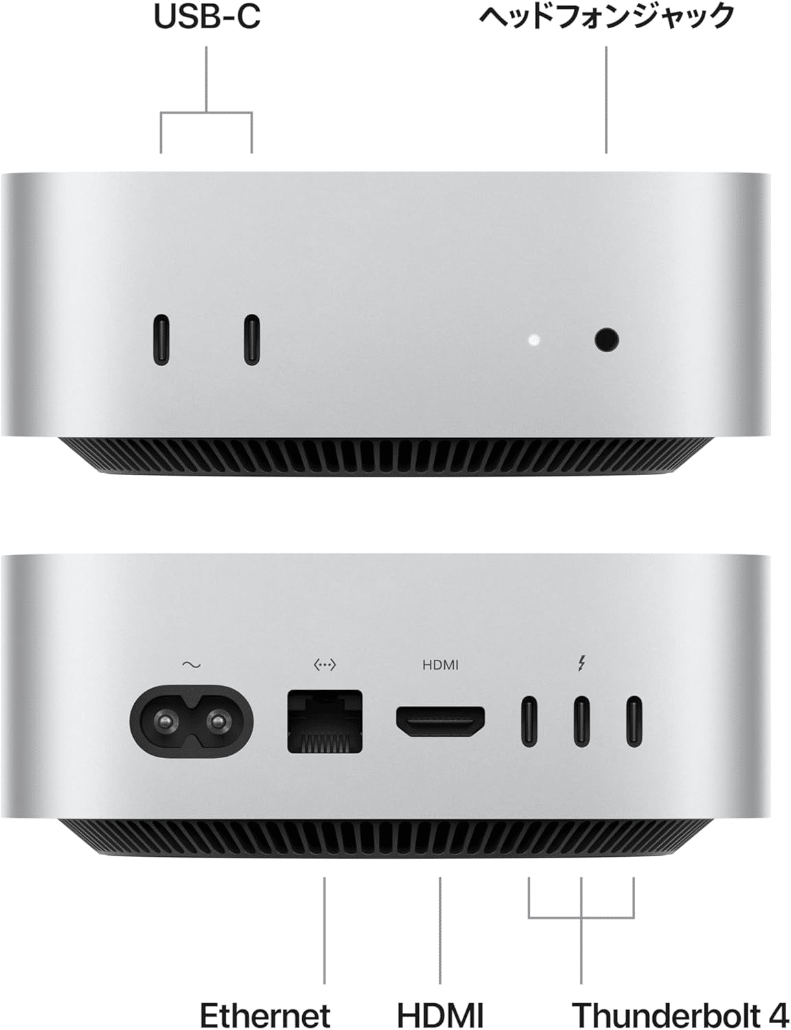 端子 – Apple 2024 Mac mini M4 10コア 16GB 256GB