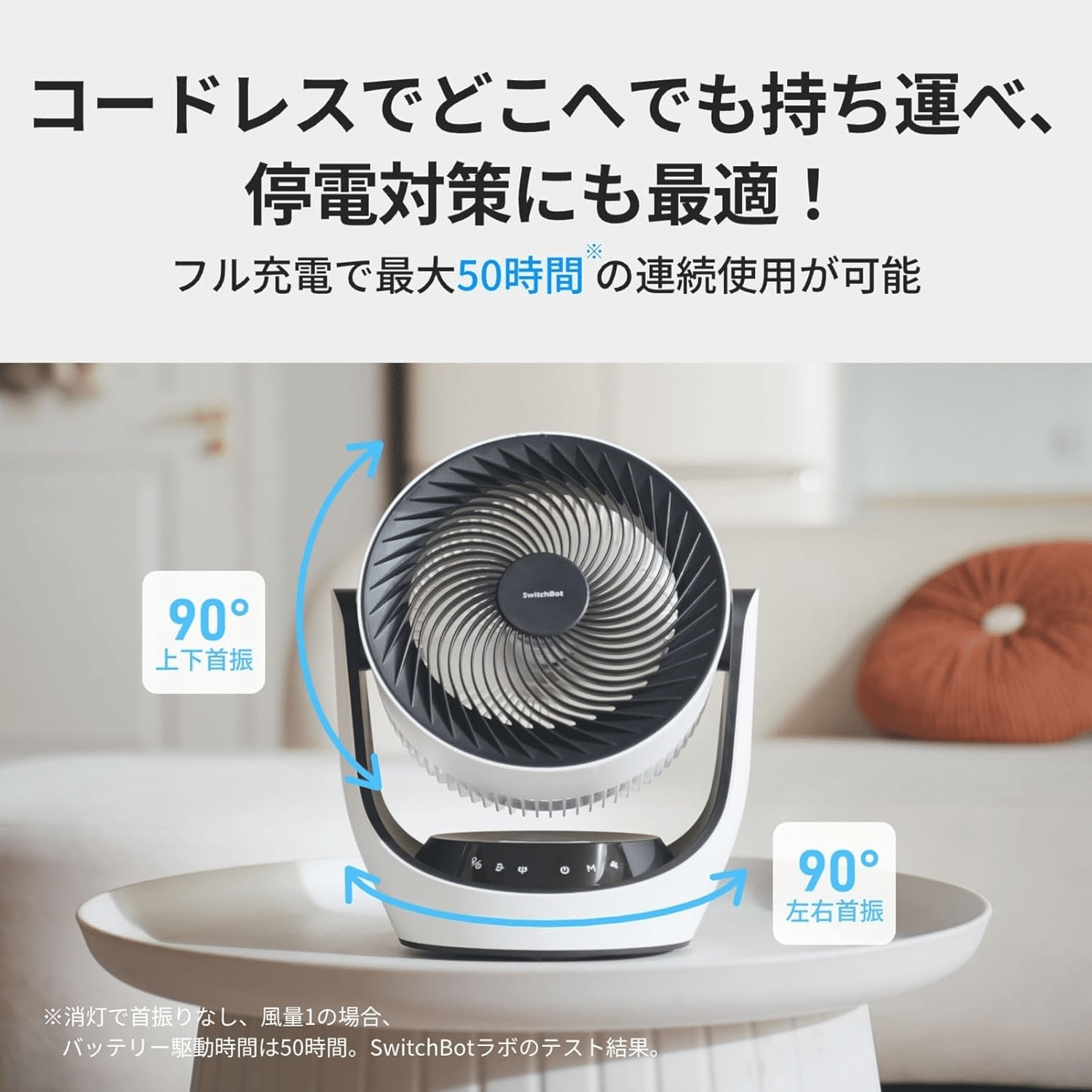 Title 【節電対策】SwitchBot サーキュレーター 静音 首振り Alexa – コードレス スイッチボット 扇風機 ~30畳 DCモーター 省エネ 充電式バッテリー搭載 無段階風量調整 リモコン付き 梅雨対策