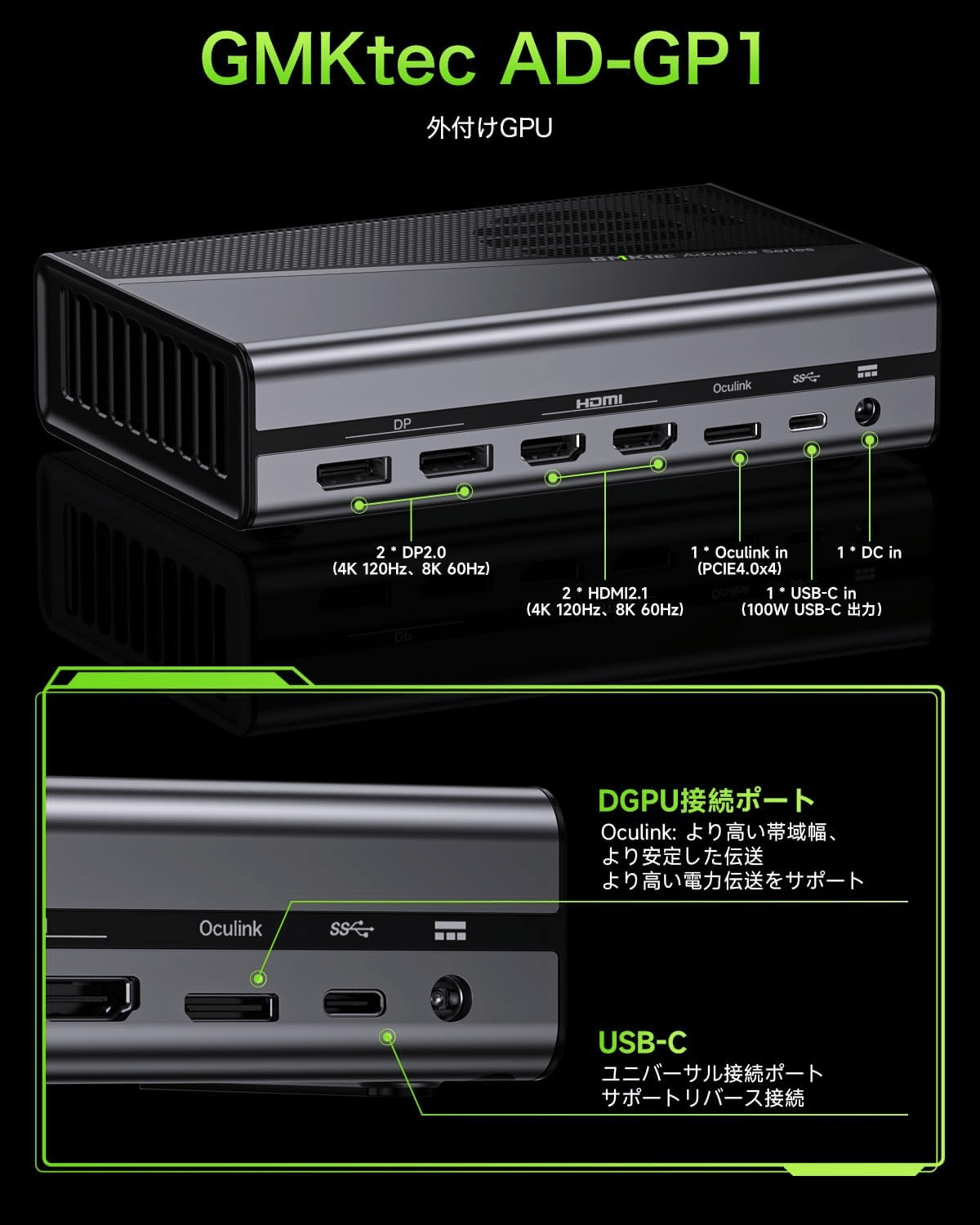 接続: USB4、OCulink (PCIe 4.0 x4)
