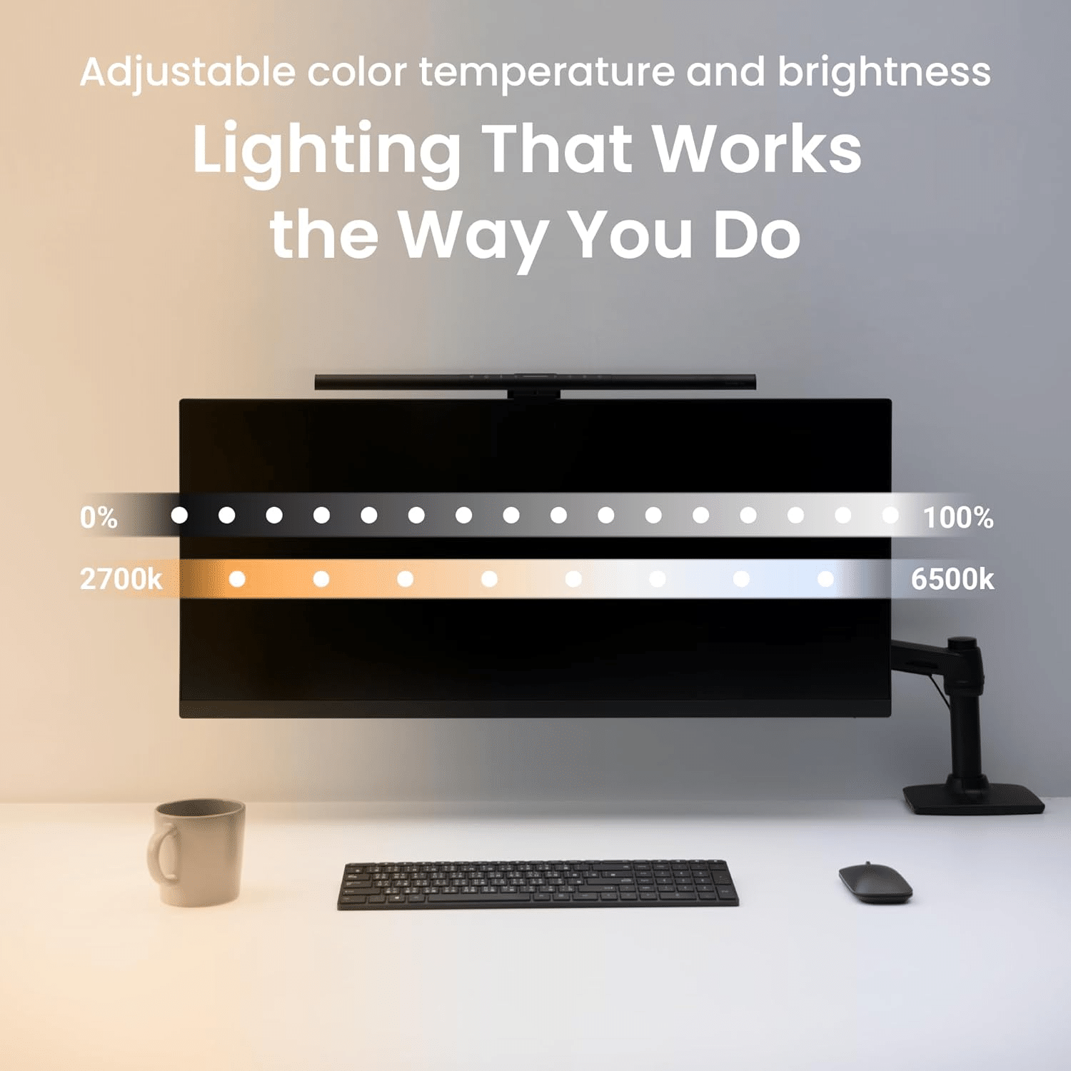BenQ ScreenBar Pro モニターライトは、在宅勤務や長時間のPC作業を快適にする優れたアイテムです。広範囲を均一に照らす1000ルクスの明るさと、目に優しい非対称光学技術が特徴。自動点灯・消灯や調光機能により、操作の手間を省きつつ最適な照明環境を維持します。湾曲モニターや薄型モニターにも対応する特許クランプで、設置も簡単。シルバーのスタイリッシュなデザインはデスクの雰囲気を高め、作業効率とモチベーションを向上。やや高価ですが、機能性とデザイン性を求めるならその価値は十分。長時間のデスクワークで目の疲れを感じる方や、スマートな作業環境を目指す方にぜひおすすめしたい一台です。
